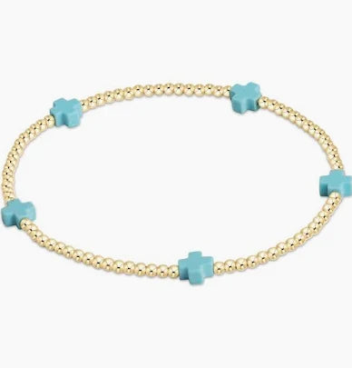 EGIRL Signature Cross Small Gold Pattern 2mm Bead Bracelet