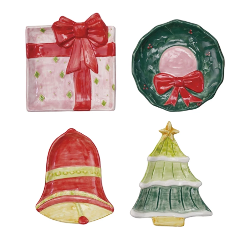 Elevate your holiday table with these exquisite 3/4" hand-painted stoneware dishes, each skillfully crafted in festive icon shapes. Sold individually, they offer versatile charm for serving small treats or accenting your seasonal décor with a refined, artisanal touch.