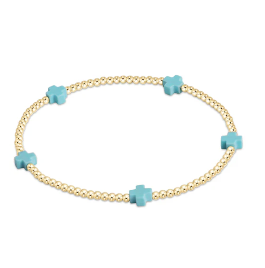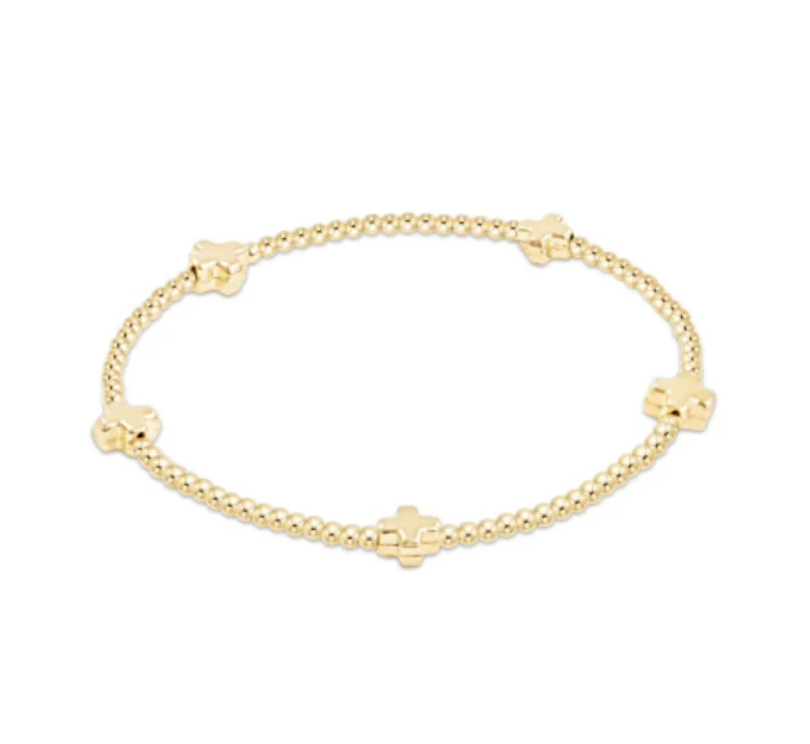 EGIRL Signature Cross Small Gold Pattern 2mm Bead Bracelet