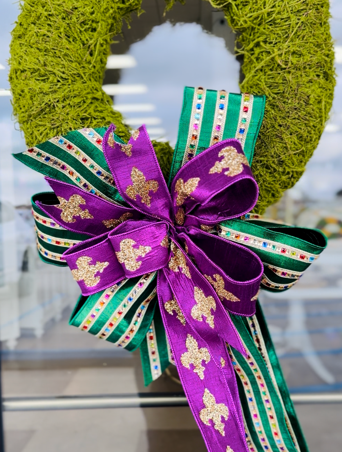Perfect for welcoming guests all season long, this Fleur de Lis Mardi Gras Wreath Bow brings Southern charm and Mardi Gras magic together in one beautiful display! Reusable year after year, it’s a must-have for celebrating in true Louisiana style!