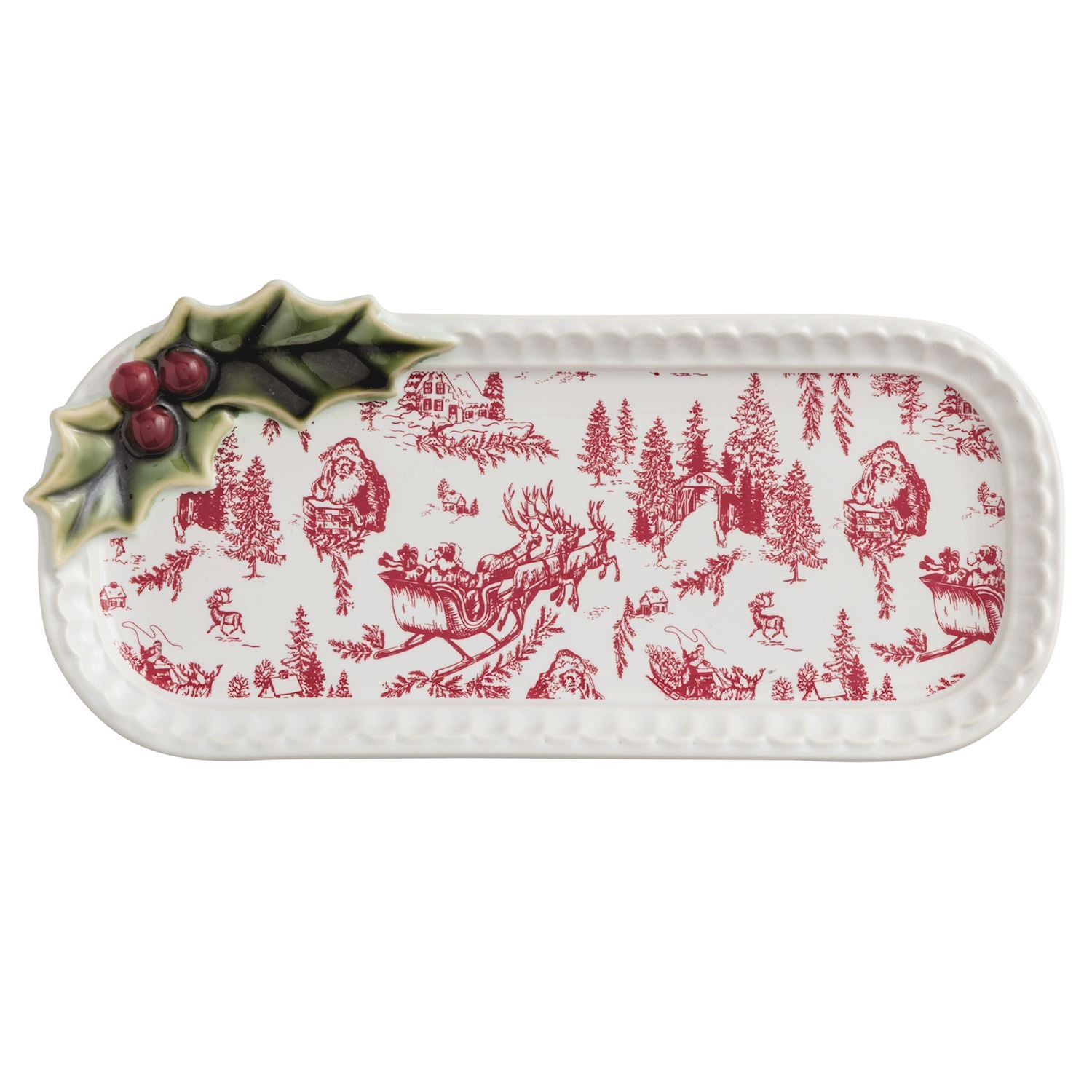 Fluted stoneware everything plate features toile surface and hand-painted stoneware