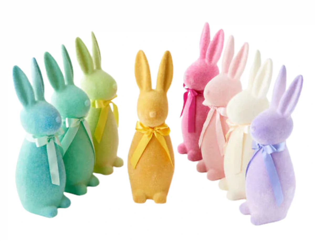 These rainbow colored Easter bunnies are the perfect decoration for your house or party! A fuzzy 16" button nosed Easter bunny. The perfect size! It is hard to pick to pick just one - they are all darling!