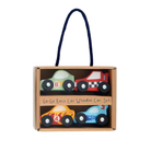 Set of four charming wooden mini vehicles, perfect for little hands to explore and enjoy. Each vehicle is crafted from durable pine wood, ensuring long-lasting play and imaginative adventures. Packaged in an eco-friendly kraft gift box, it features a convenient cotton rope top handle for easy carrying. Ideal for children aged 18 months and up, this delightful set encourages motor skills development and endless fun.