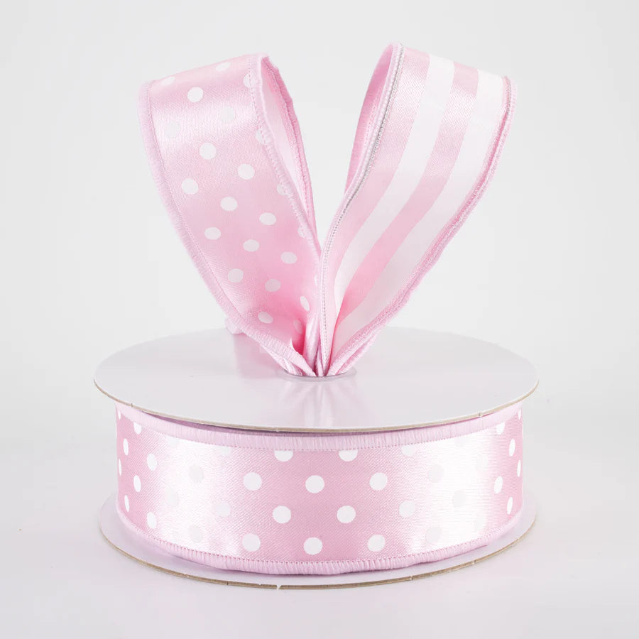 1.5" Double Sided Fused Polka Dots & Stripes Pink Ribbon