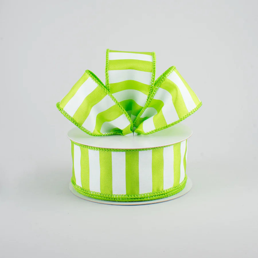 1.5" Medium Stripe Lime Green & White Ribbon