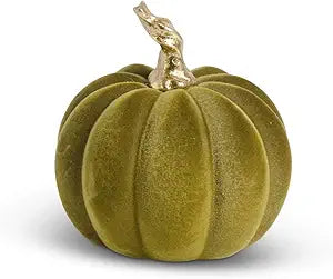 3.5 Inch Green Velvet Pumpkin w/ Twisted Gold Stem