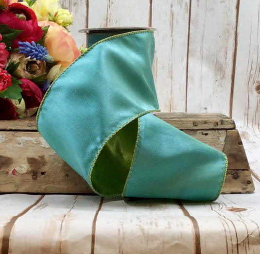 Aqua-Green Faux Dupion 4" Ribbon