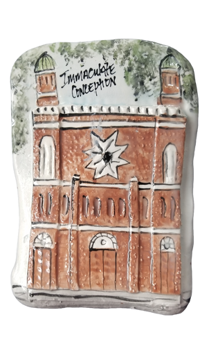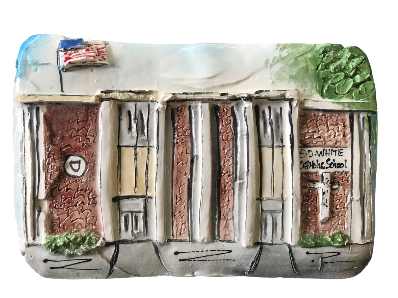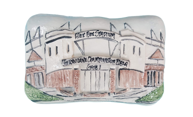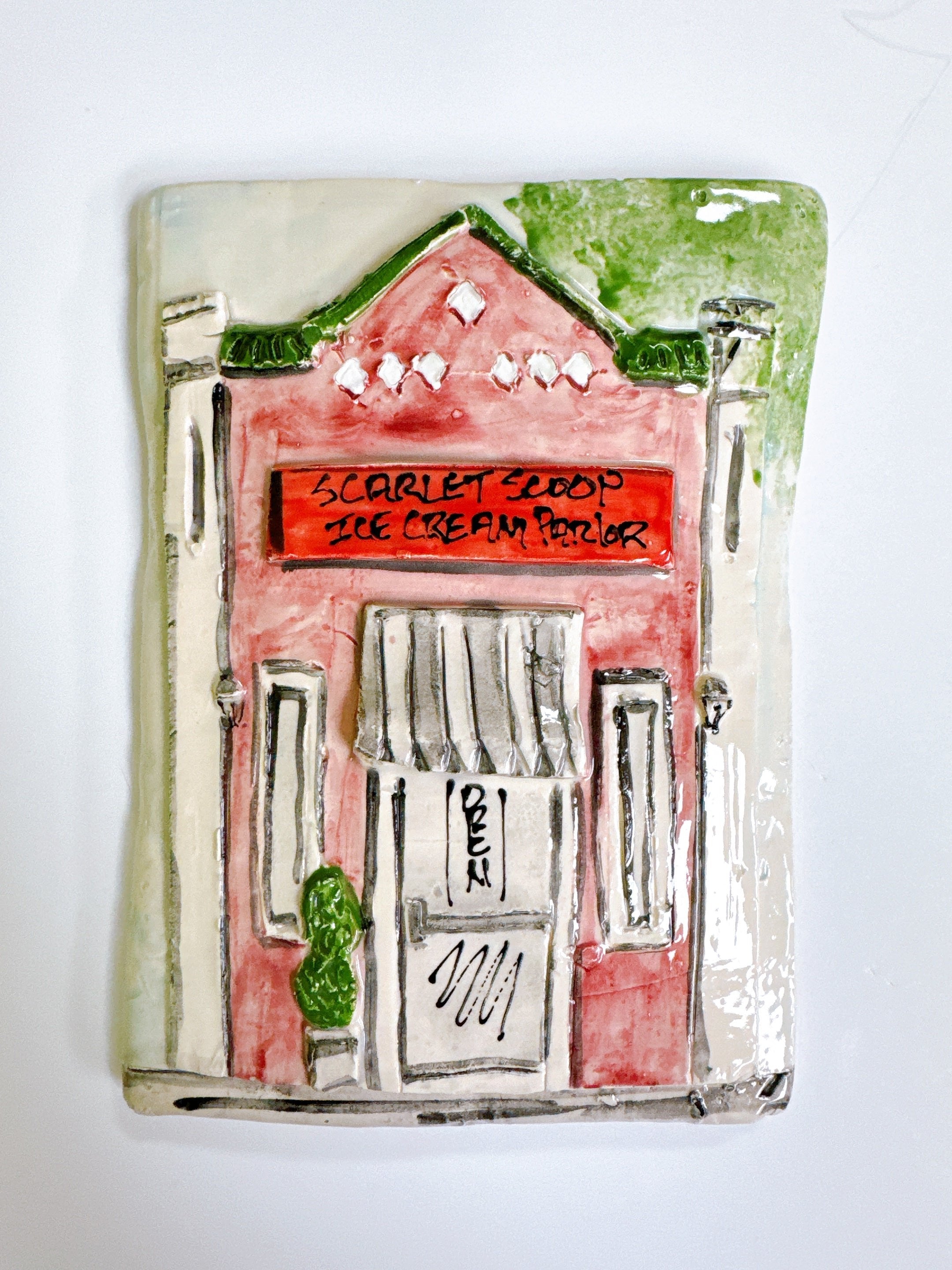 These plaques represent area landmarks. Take a trip down Memory Lane while viewing places that represent good times! Each and every piece is hand-made and individually painted and are generally 5 x 7″ in size.