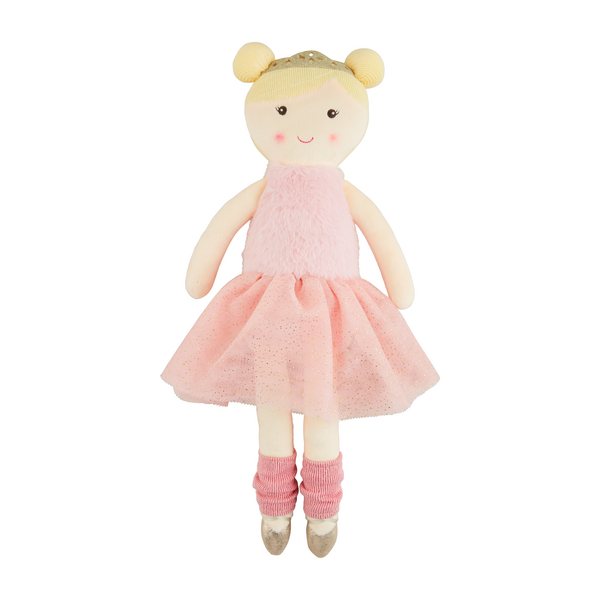 The Pink My First Ballerina Doll is a huggable plush toy made from soft minky material.
