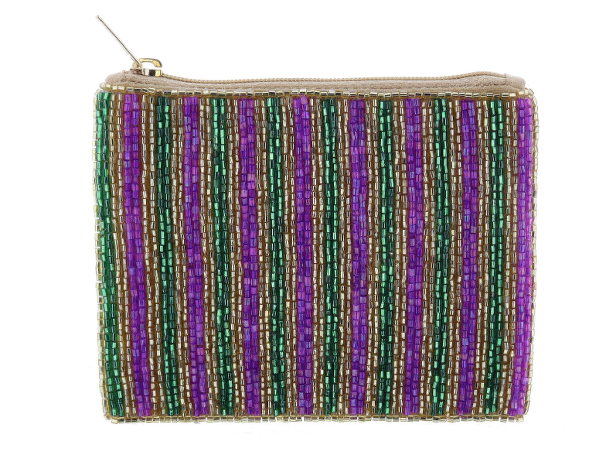 Beaded Stripes Coin Purse-Green, Gold, Purple