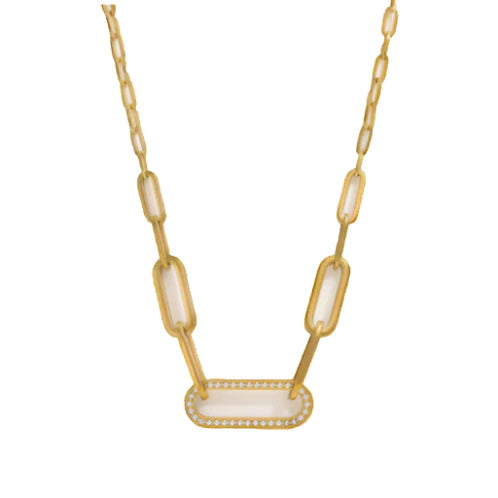 Elevate your style with the Bougee Paperclip. The perfect combination of elegance and practicality, this necklace features a simulated diamond accent and a stainless gold plate to add a touch of luxury to any outfit. Complete your look with this must-have accessory. 16" plus 2" extension.