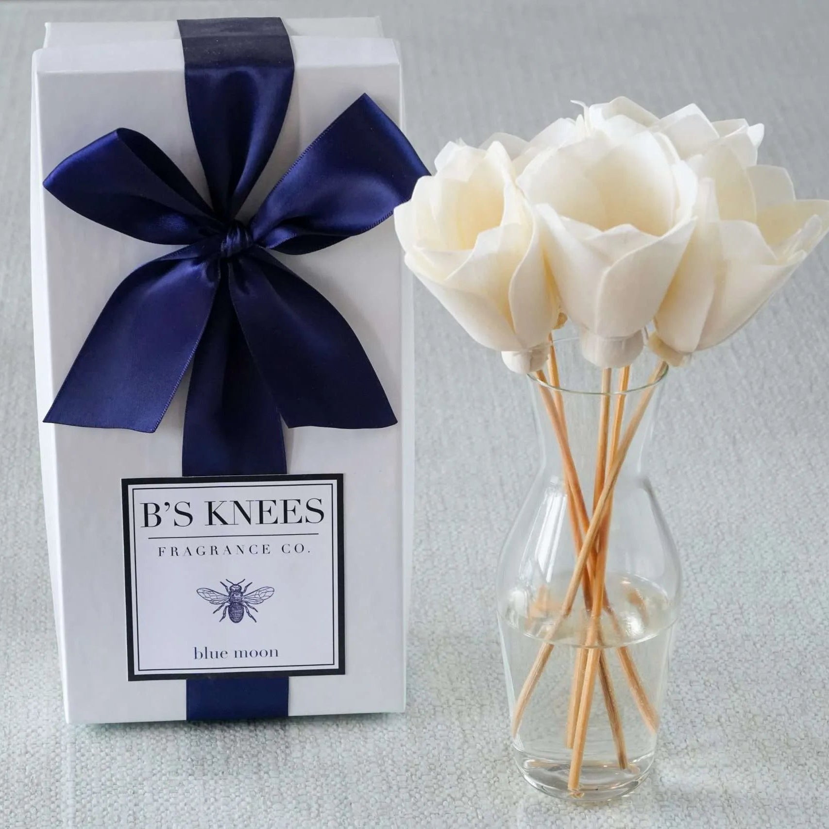 Once in a blue moon we discover a fragrance that is that rare and perfect combination of all the scents we love! Jasmine, white tea, and cyclamen, infused with subtle hints of teakwood, sandalwood and amber! Breath in that fresh night air!