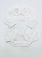 Our long sleeve bubbles are here! These are made from a cotton/spandex blend and just waiting for those little blessings! Sweet little details include a ricrac edge on the collar and picot trim on the sleeves.