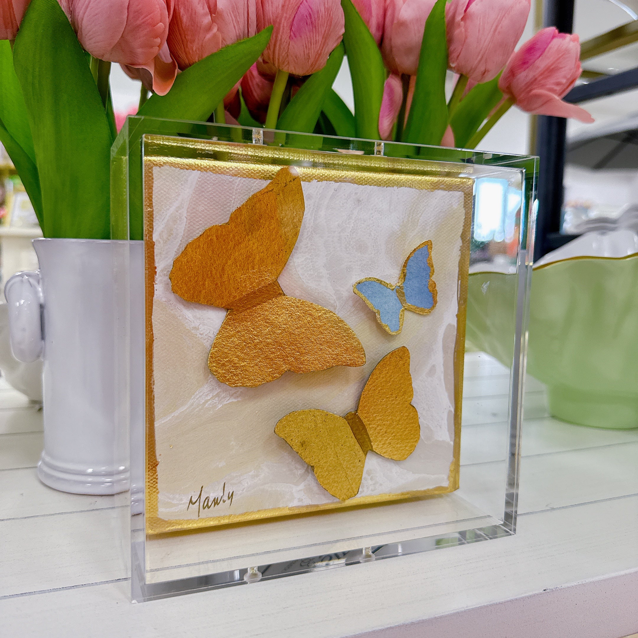 Designed by Dana Manly, this 6 x 6 inch piece features delicate "It's a Boy" and "It's a Girl" butterflies, adding a touch of elegance to any nursery or home. Embrace the beauty of nature and elevate your space with this timeless and tasteful art piece.