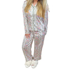 Introducing our Satin Charlotte Pajama Set, where luxury meets relaxation. Whether you're lounging at home or preparing for a restful night's sleep, this pajama set is your go-to for a truly luxurious experience. Our Satin Charlotte Pajama Set combines elegance and practicality, featuring a button-front top with a classic collar, paired with straight leg pants with an adjustable drawstring.