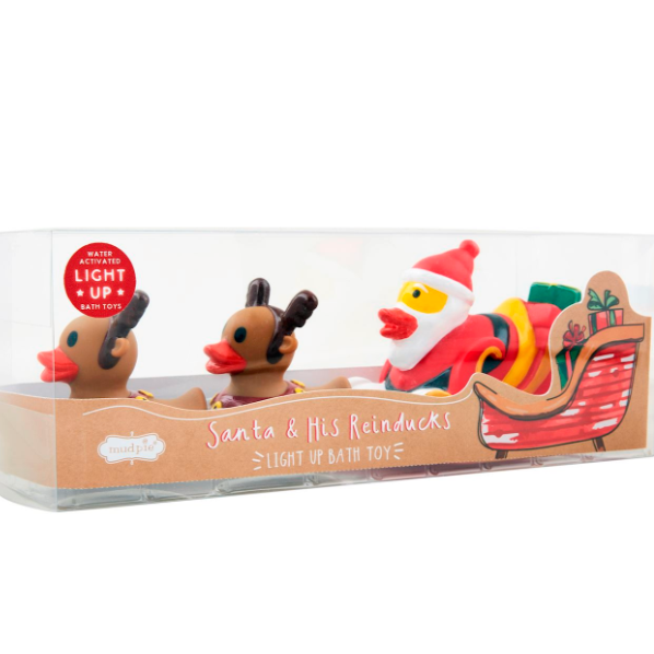 Set of 3. Santa's sleigh lights up in water. BPA free. Ages 18M+.
