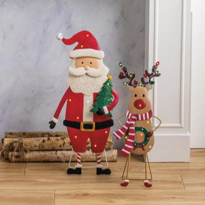 Add a touch of festive charm to your holiday décor with this enchanting Light Up Sitter. Crafted from durable metal, this decorative piece showcases intricate layered glitter tin details that shimmer beautifully under any light. Accentuated with a delightful jingle bell, it brings a whimsical sound to your seasonal celebrations. The integrated LED lights illuminate, creating a warm and inviting glow that enhances any room. Designed with an easel back, it stands securely on mantels, shelves, or tabletops, making it a versatile addition to your home.