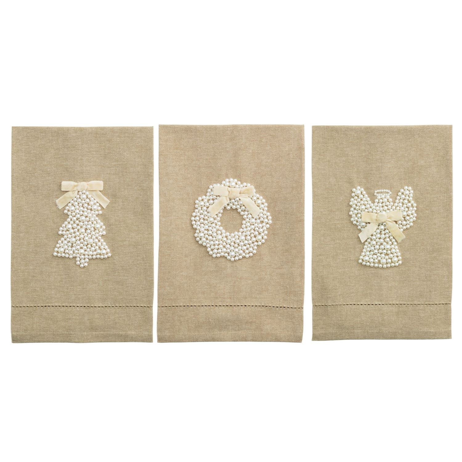 The Pearl Towel is a luxurious addition to any bathroom or kitchen, offering both elegance and functionality. Crafted from 100% cotton, this chambray hand towel is soft to the touch and highly absorbent, ensuring a gentle feel on your skin while effectively drying hands or surfaces. Measuring 21" x 14", it is perfectly sized for versatile use. The towel is adorned with exquisite pearl bead appliqué, adding a touch of sophistication and charm. A velvet bow enhances its decorative appeal, making it a stylish accent piece. Hem stitching provides a refined finish, ensuring durability and a polished look. Ideal for gifting or personal use, this towel elevates everyday routines with its unique design and quality craftsmanship.