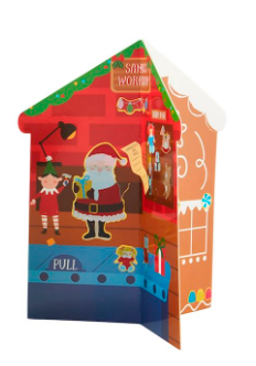 Decorate dimensional folding Christmas tree or gingerbread house booklet with included stickers. Ages 3+. Comes in wooden display crate.