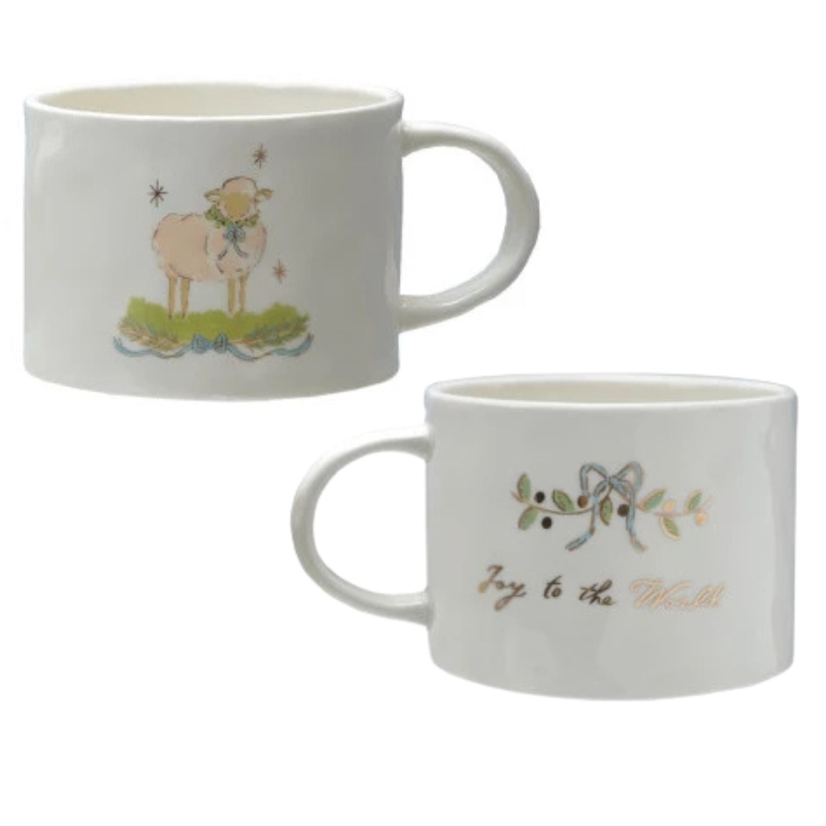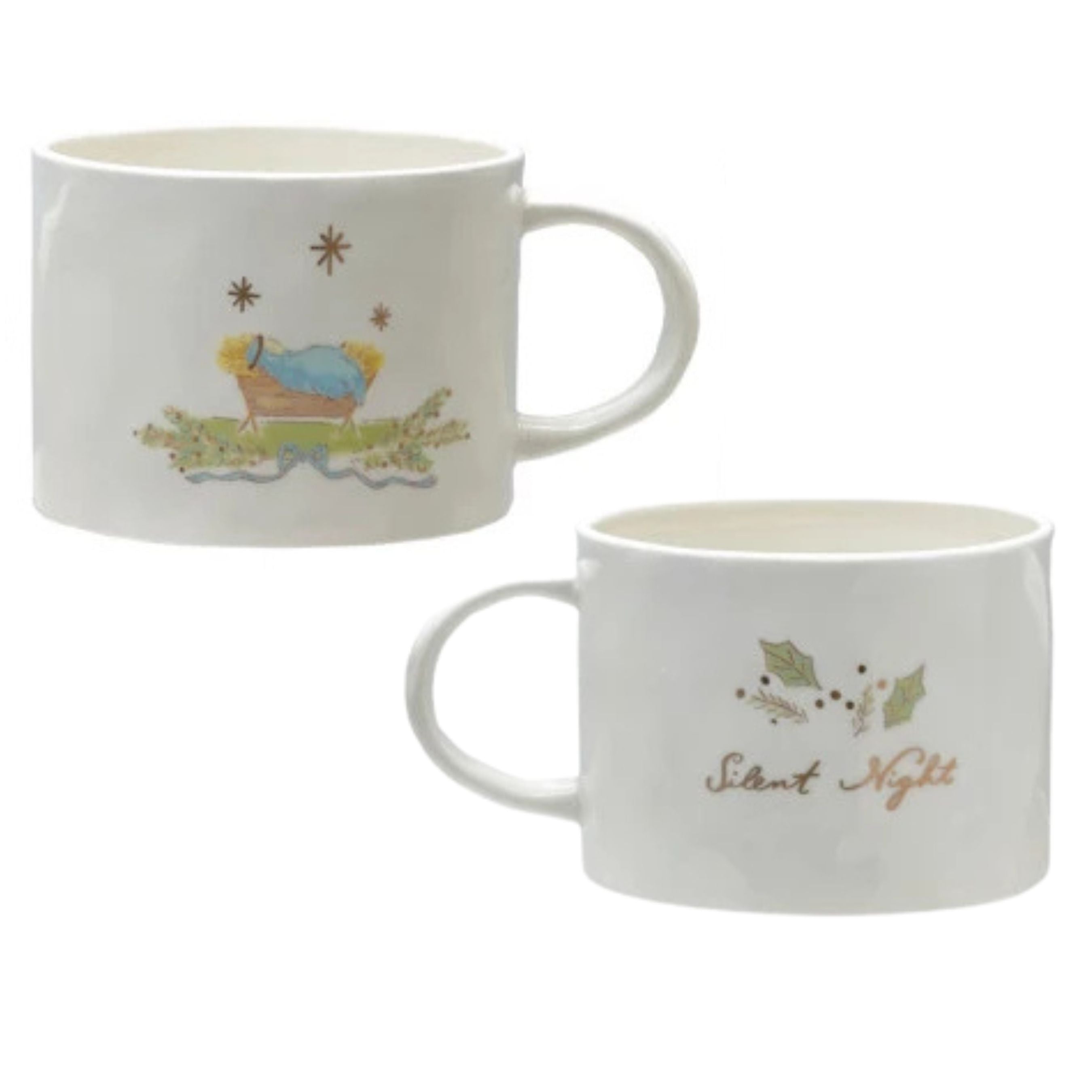 4" Round x 3"H 14 oz. Stoneware Mug w/ Holiday Figure/Saying & Gold Electroplating, Multi Color, 4 Styles