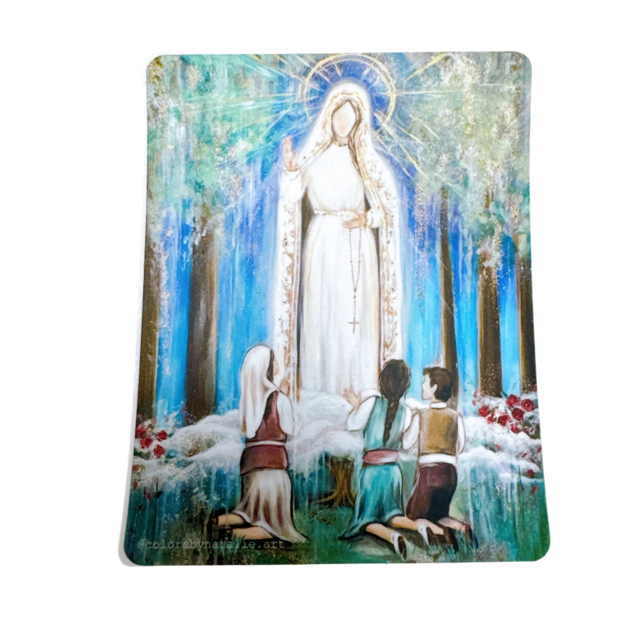 Add a touch of inspiration to your life with Colors by Natalie faith-based stickers. Choose from designs like Divine Mercy, Three Hearts, Triumphant Heart, Jeremiah 29:11, St. Michael, Song of Solomon, St. Teresa of Calcutta, Fatima, and Our Lady of Grace. These vibrant and durable stickers are perfect for personalizing water bottles, laptops, journals, and more. Carry a reminder of faith, hope, and love wherever you go!