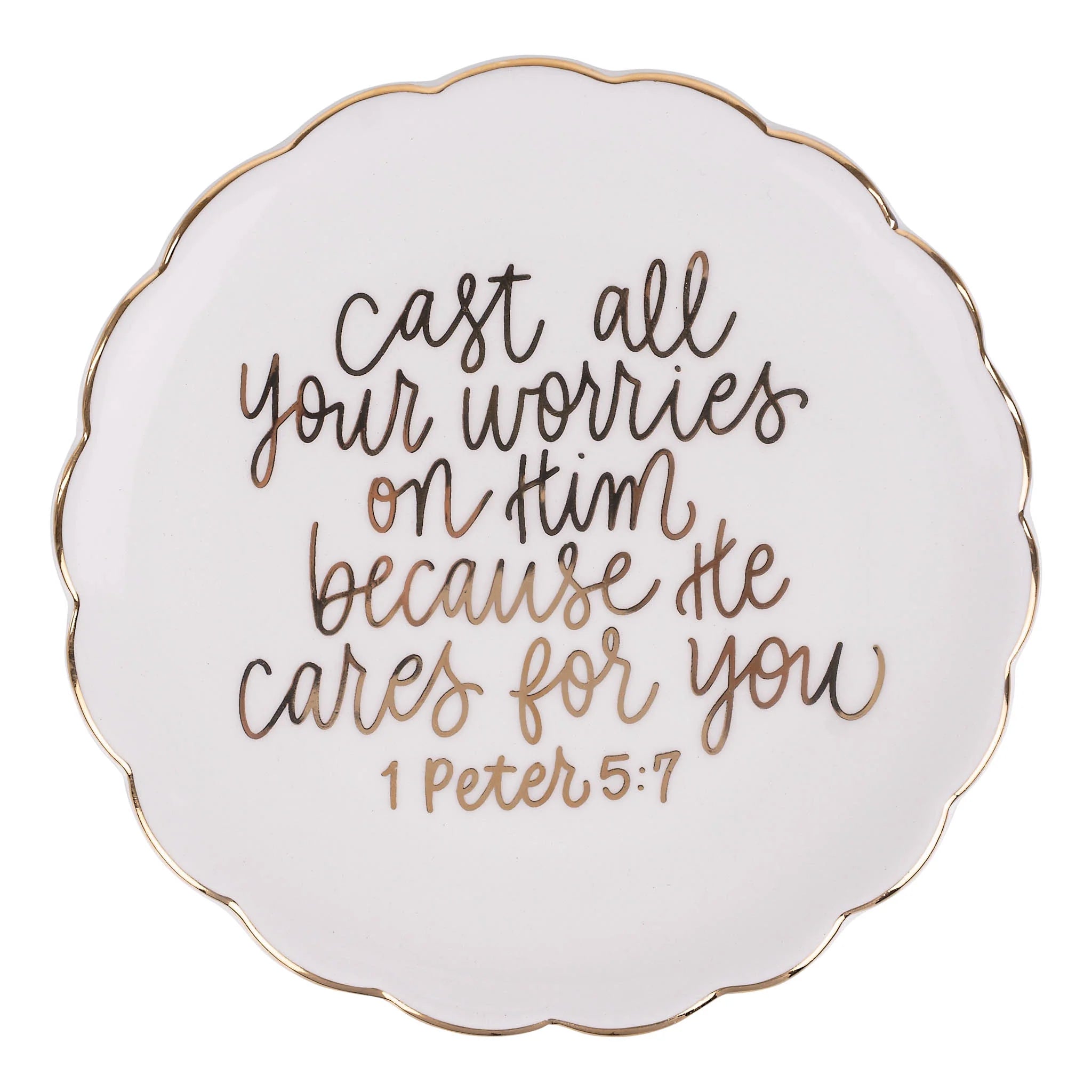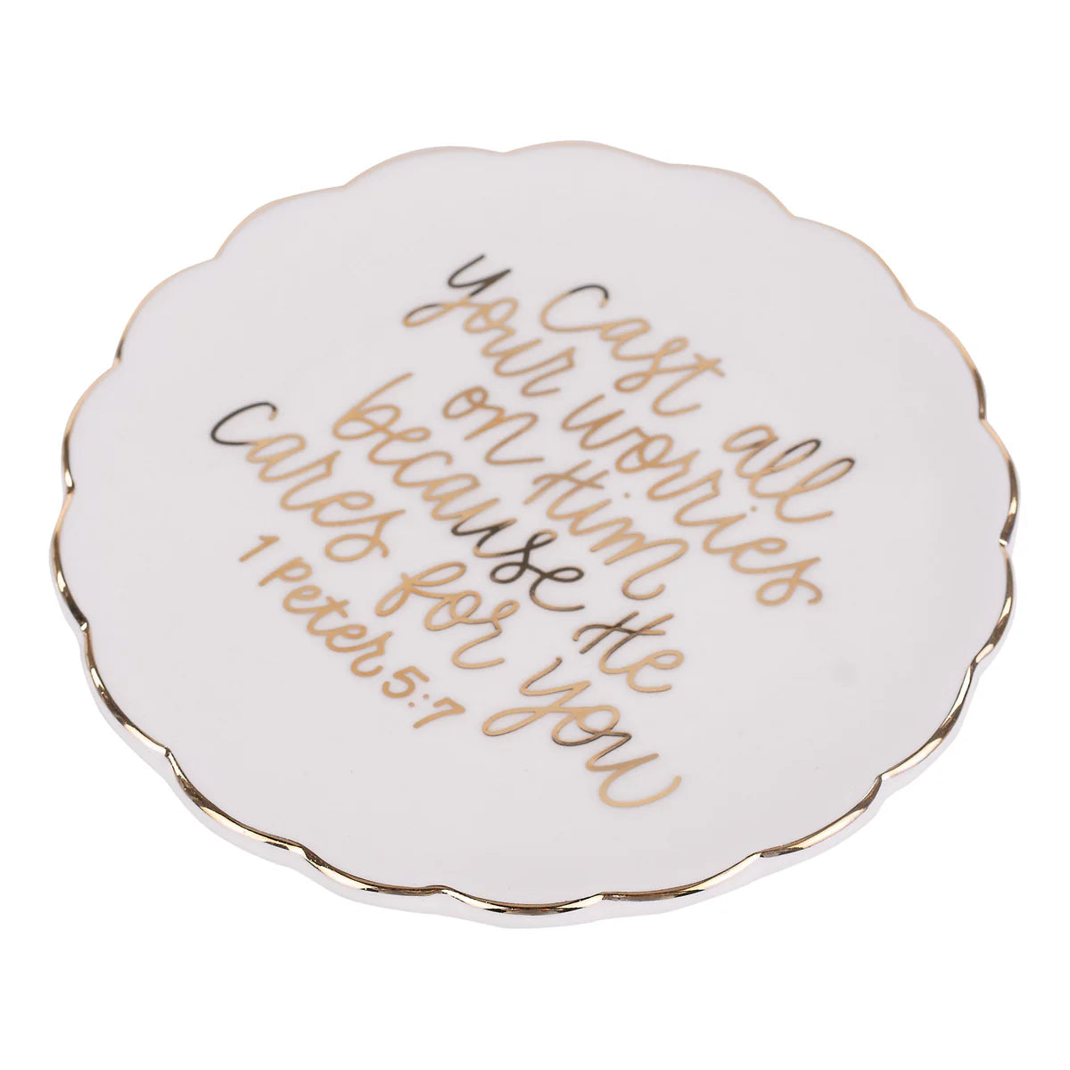 This He Cares For You Trinket Tray offers a gentle reminder of faith and comfort. Its meaningful message makes it a calming accent for prayer spaces, bedrooms, or everyday organization.