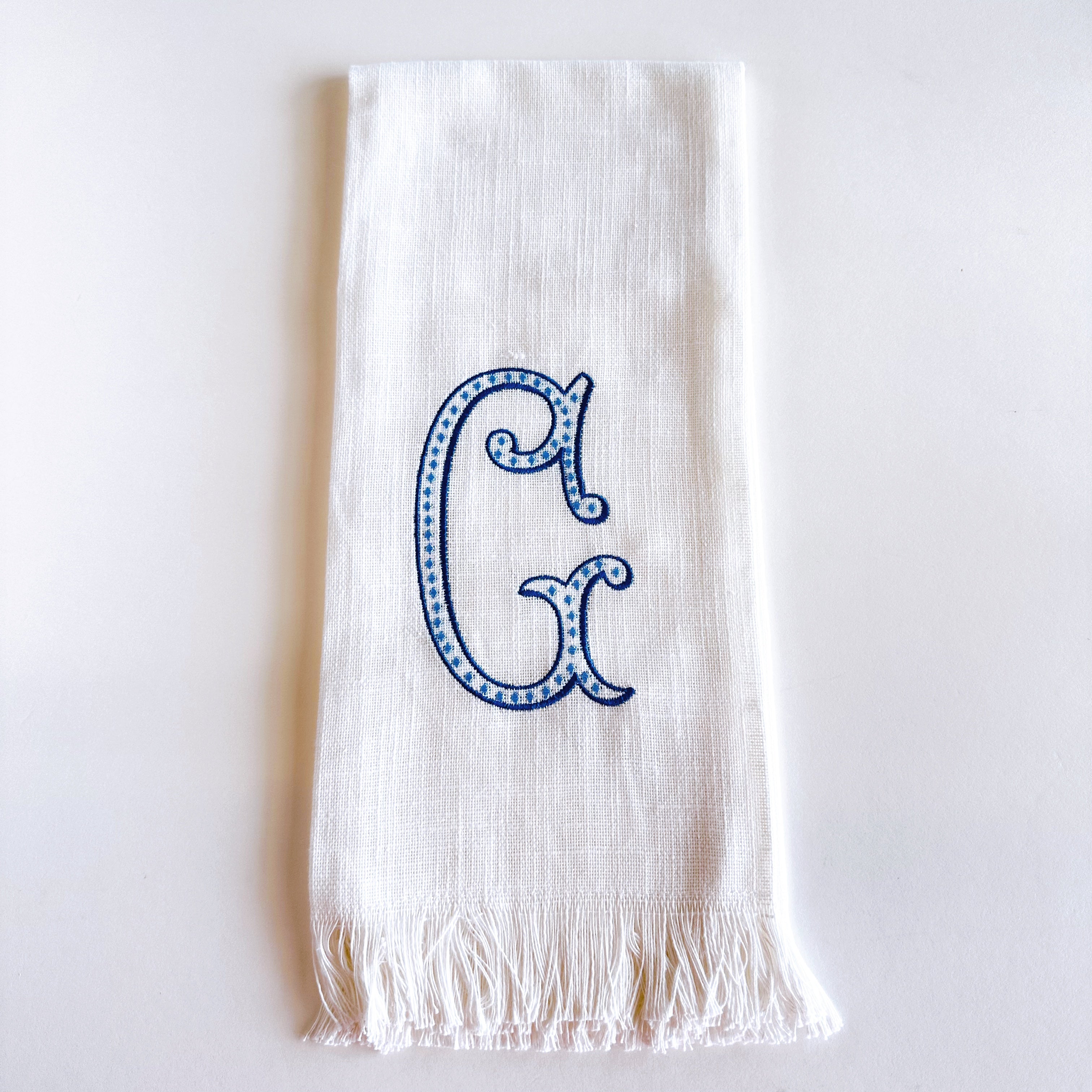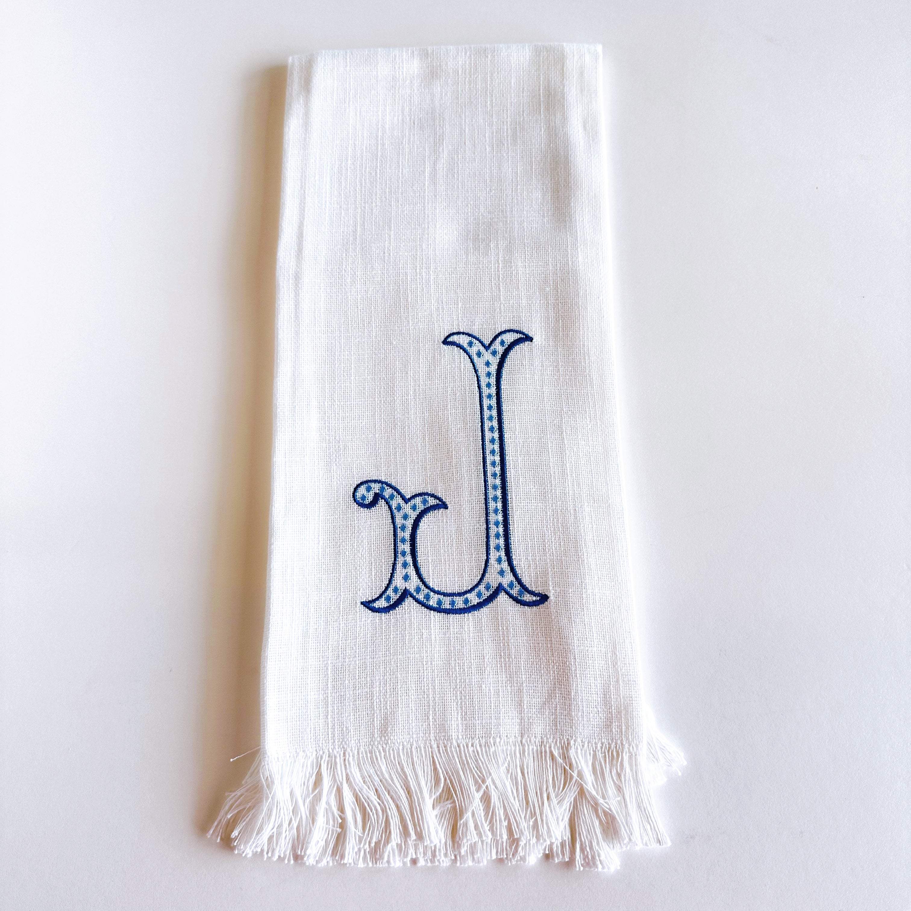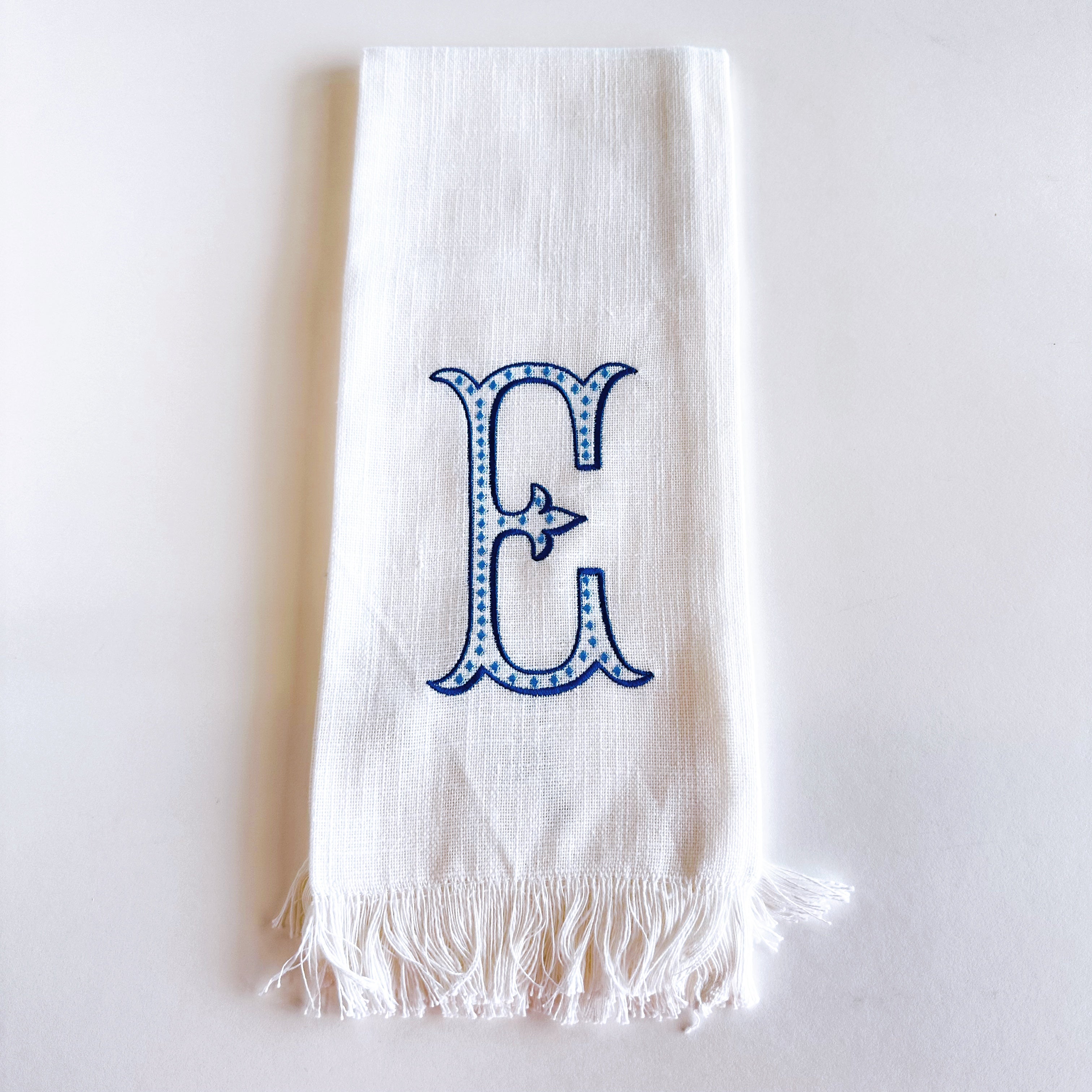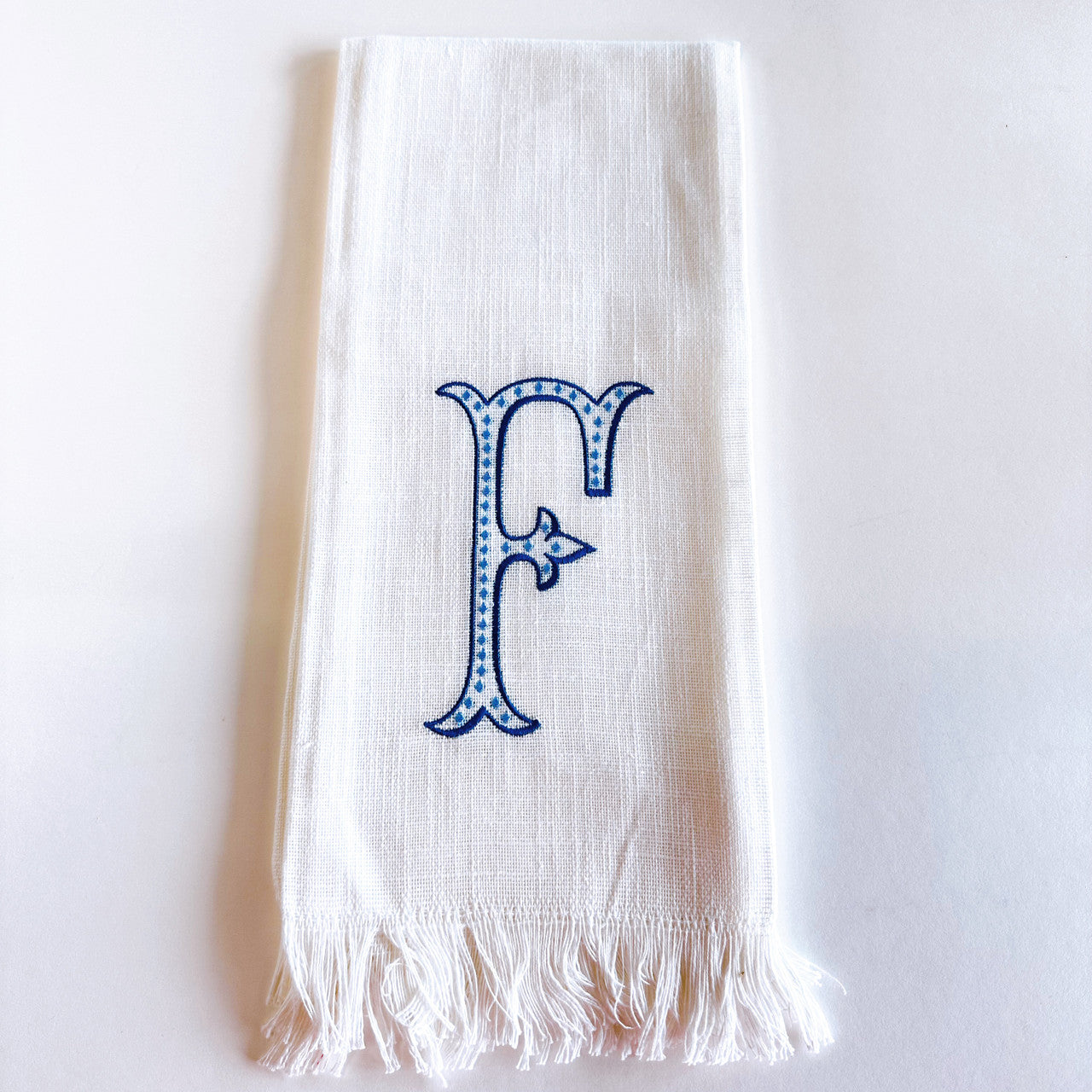 Linen Towel Blue Initial Frank Font with Roman Dot