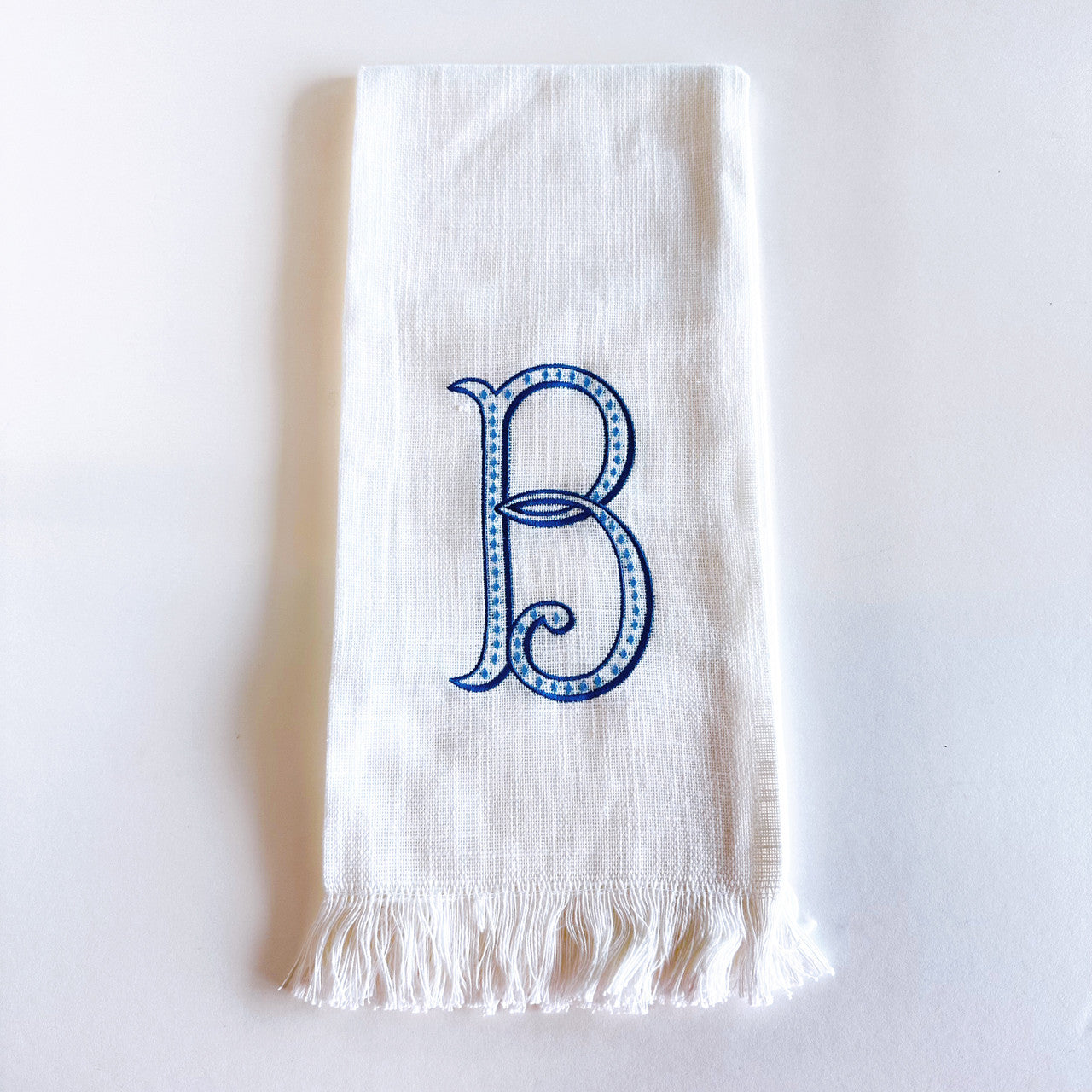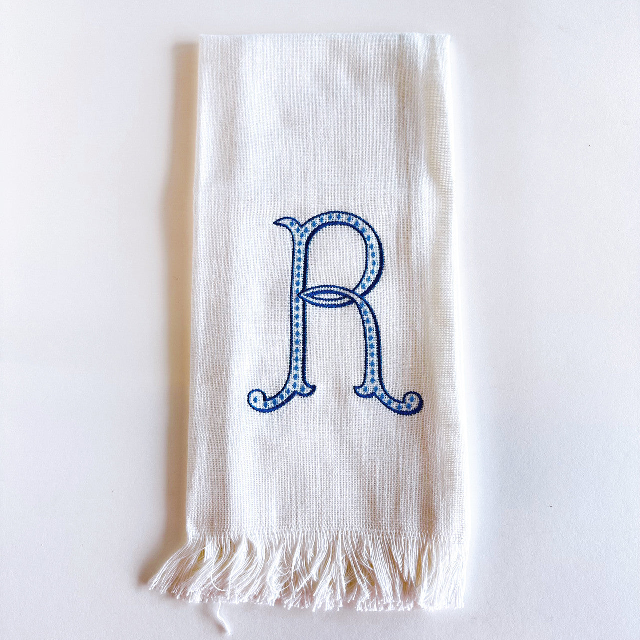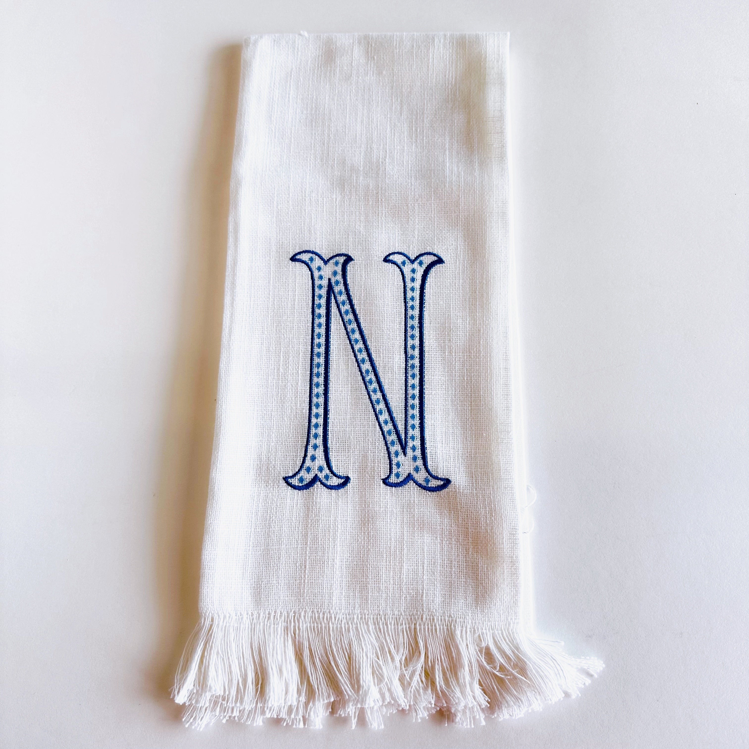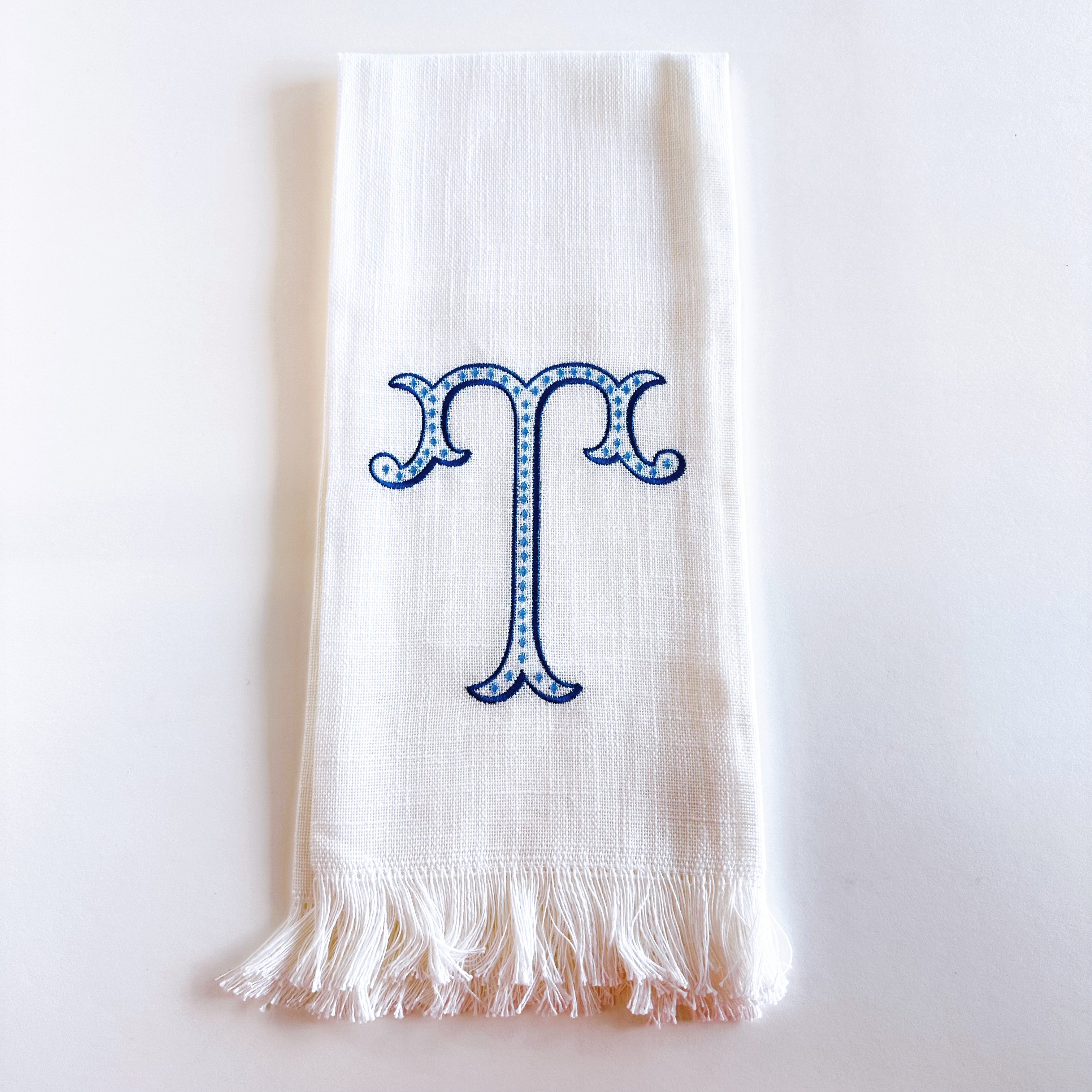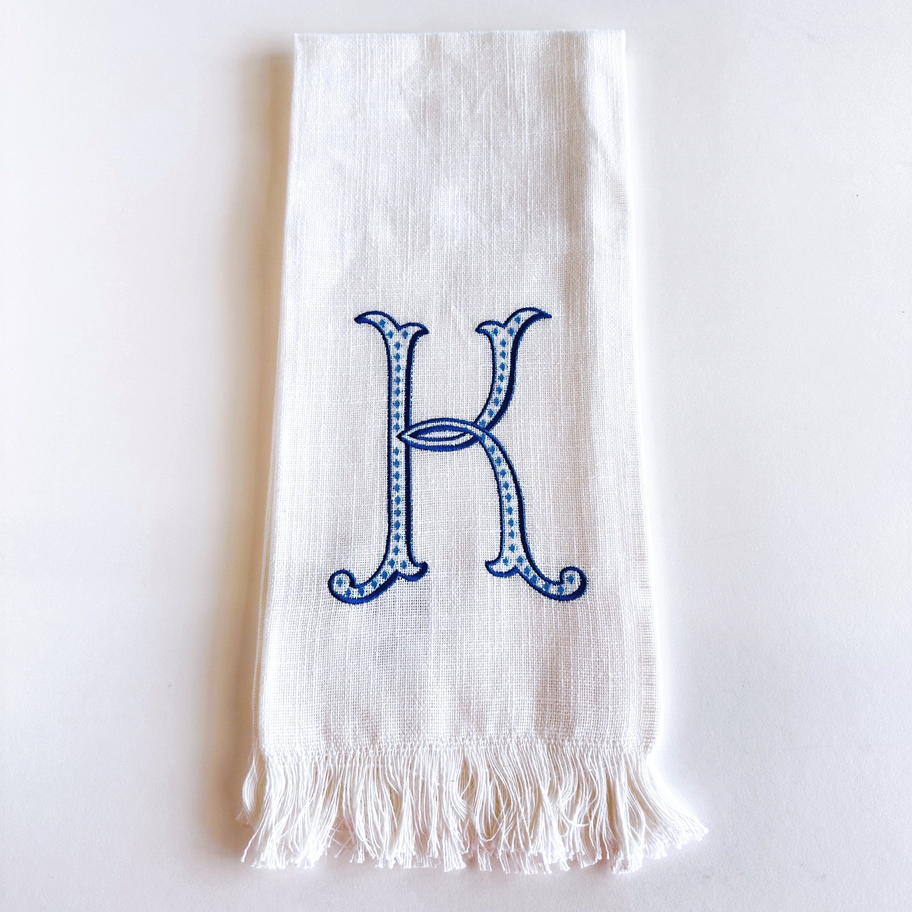 Linen Towel Blue Initial Frank Font with Roman Dot
