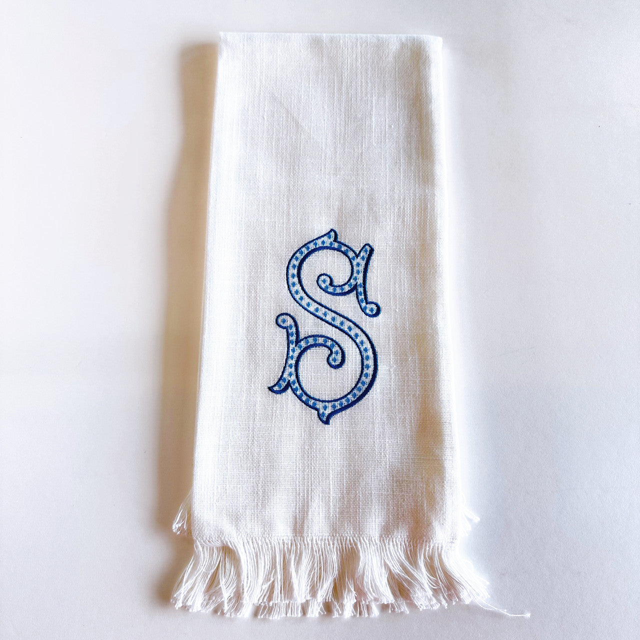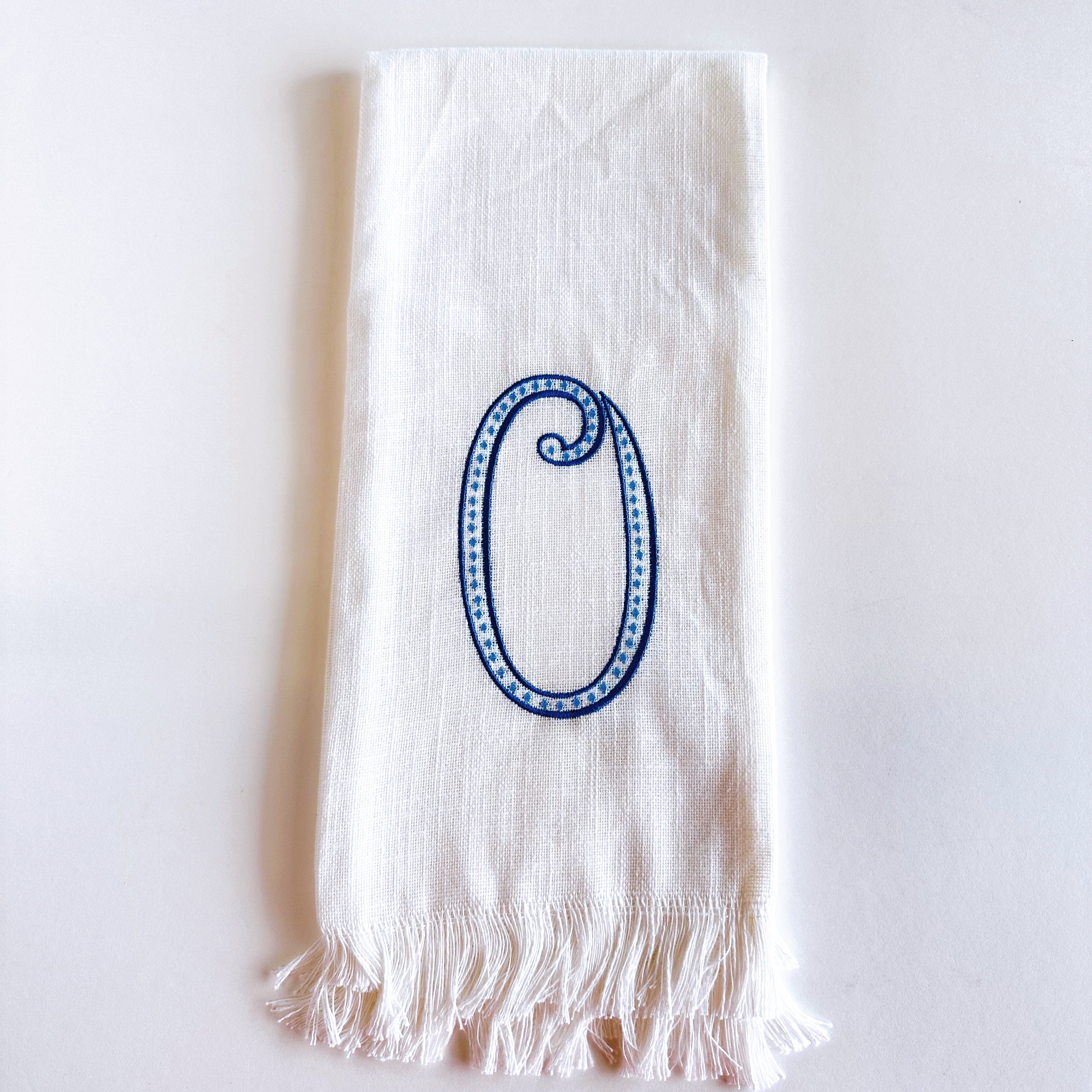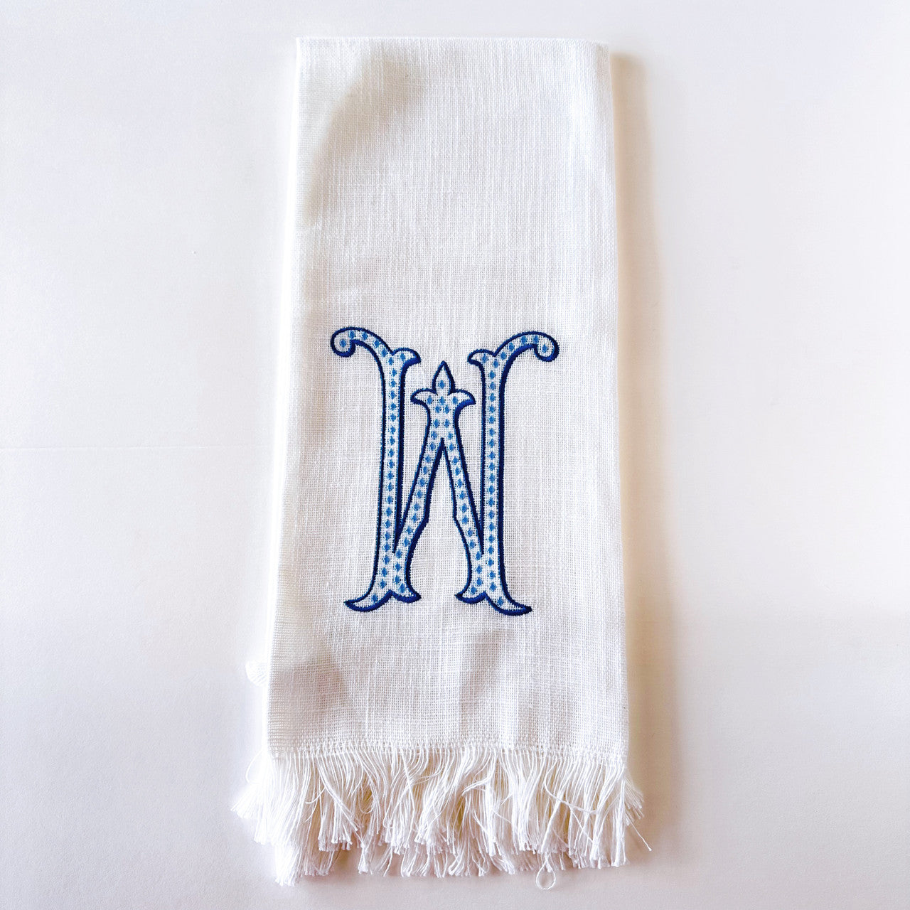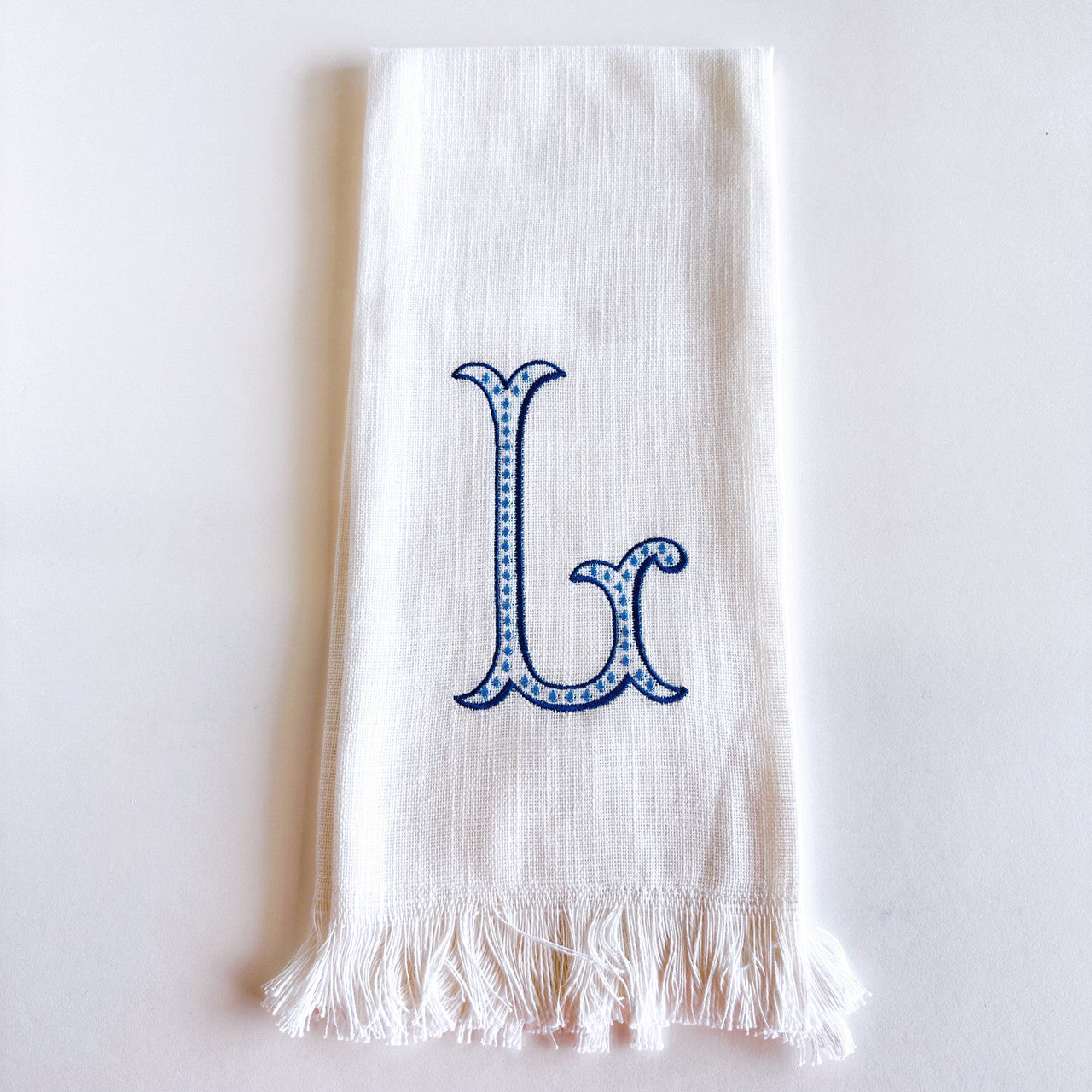 Linen Towel Blue Initial Frank Font with Roman Dot