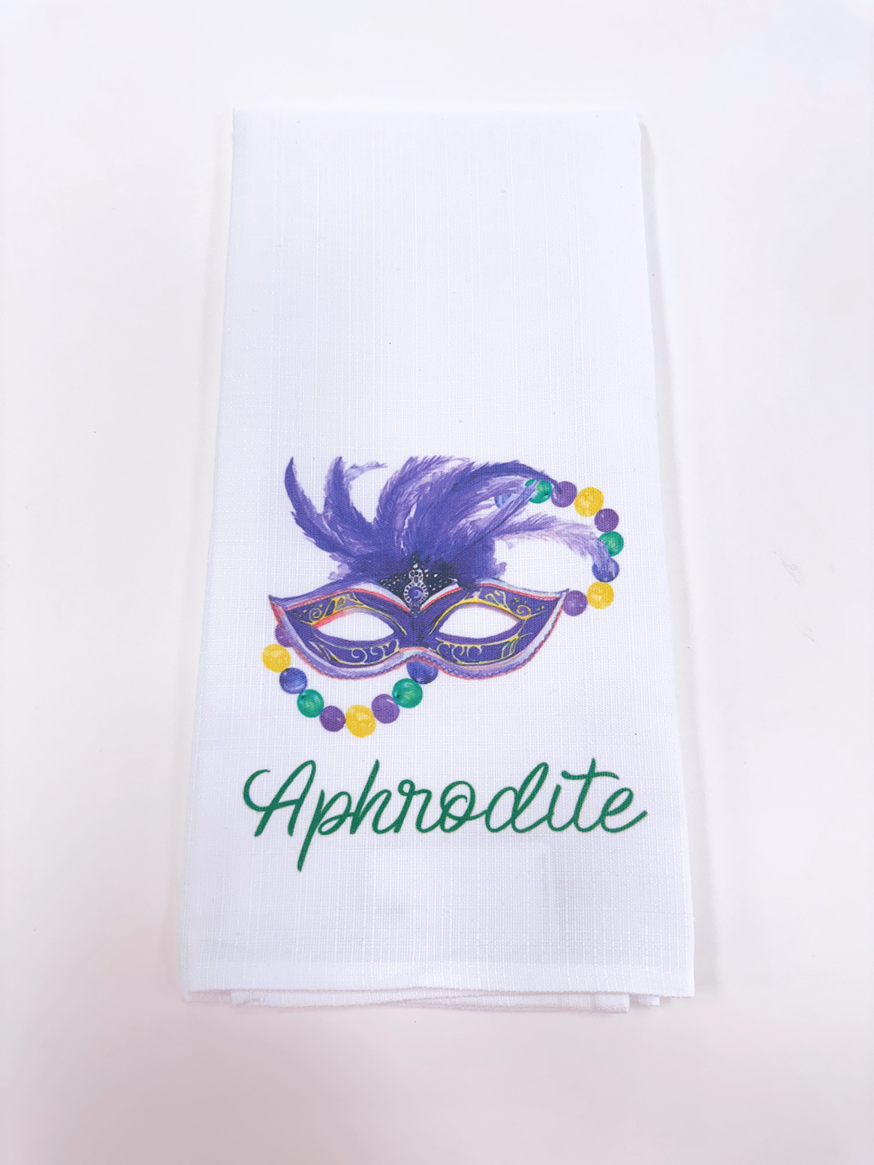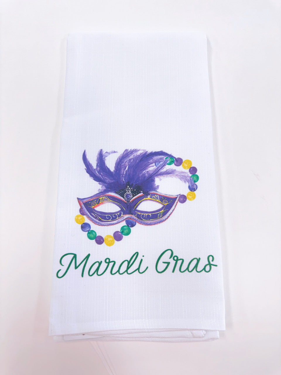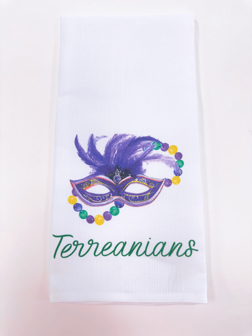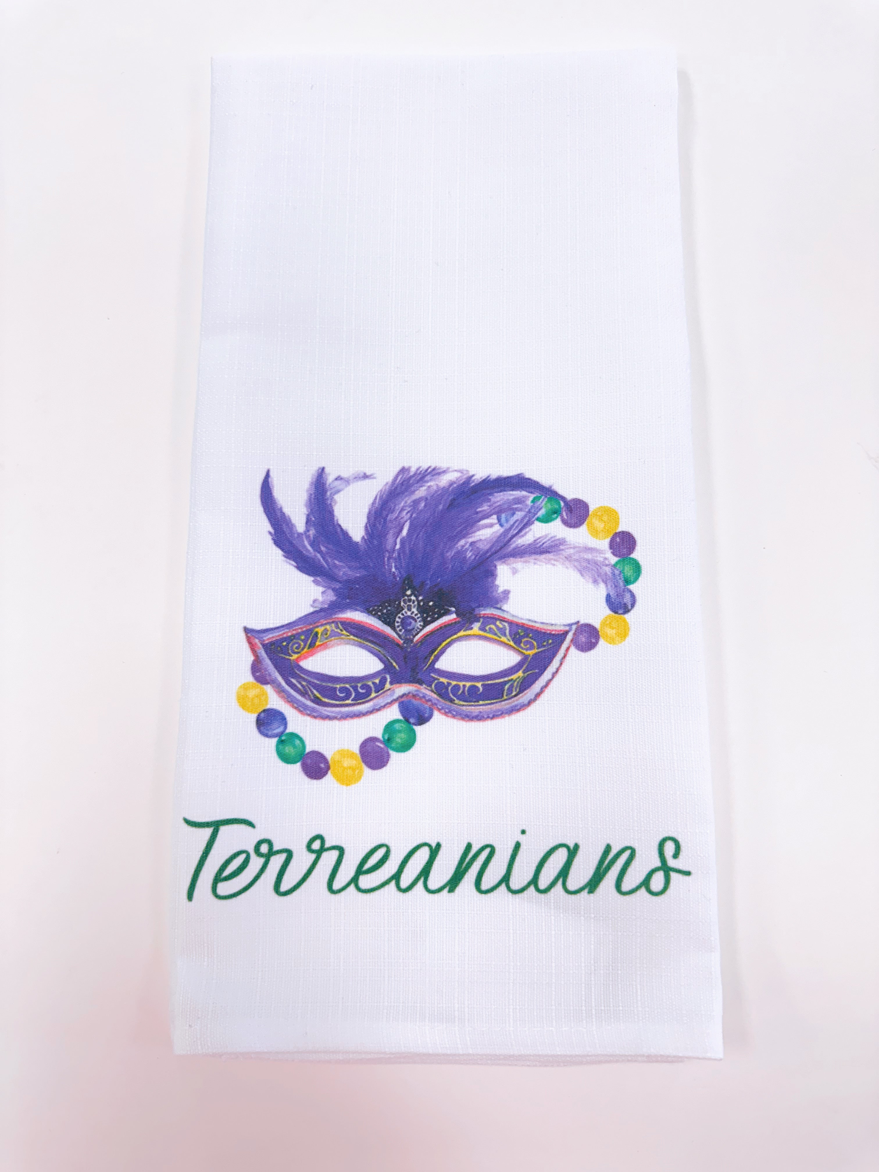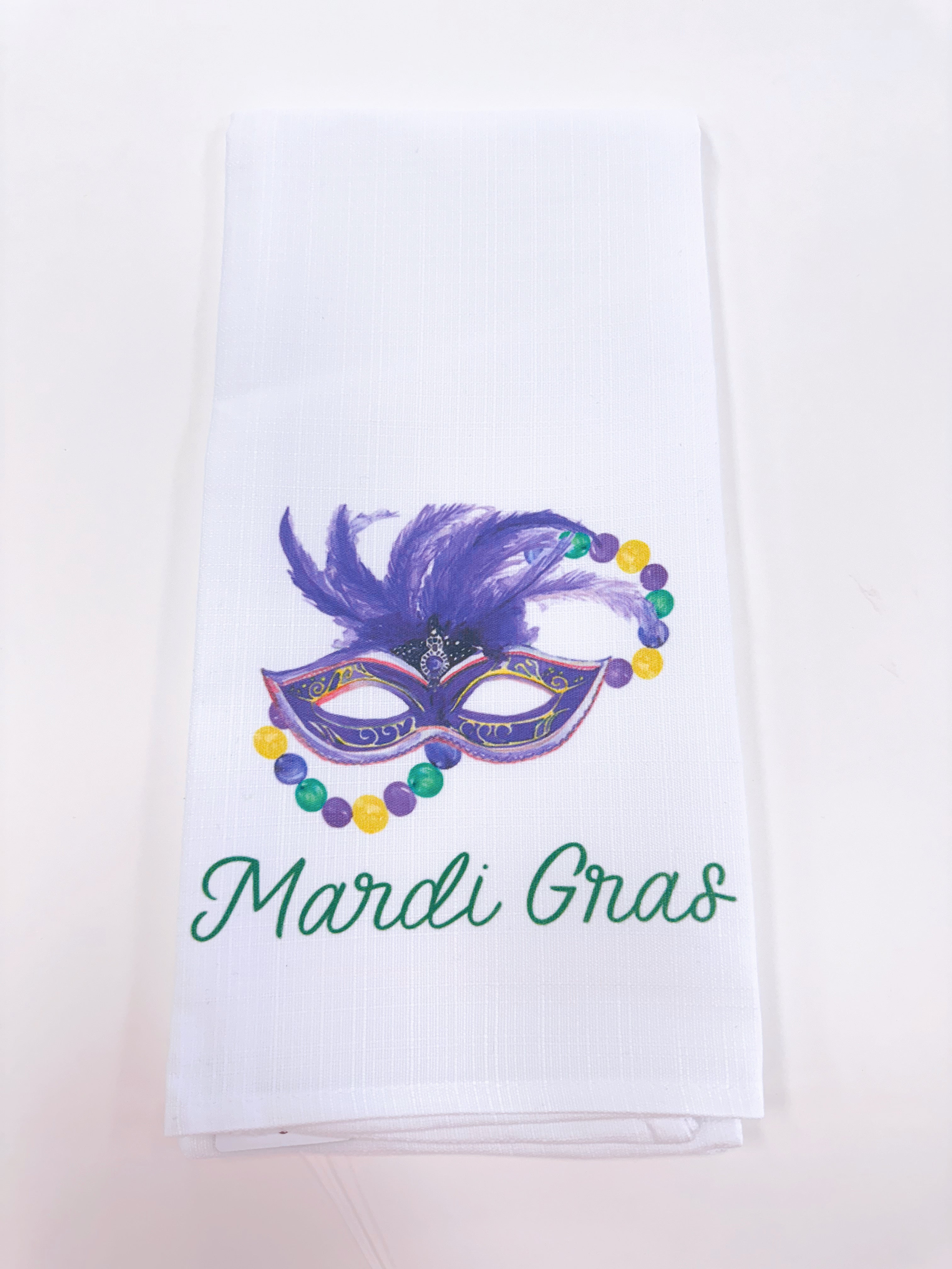 Mardi Gras Elements Happy Place Tea Towel