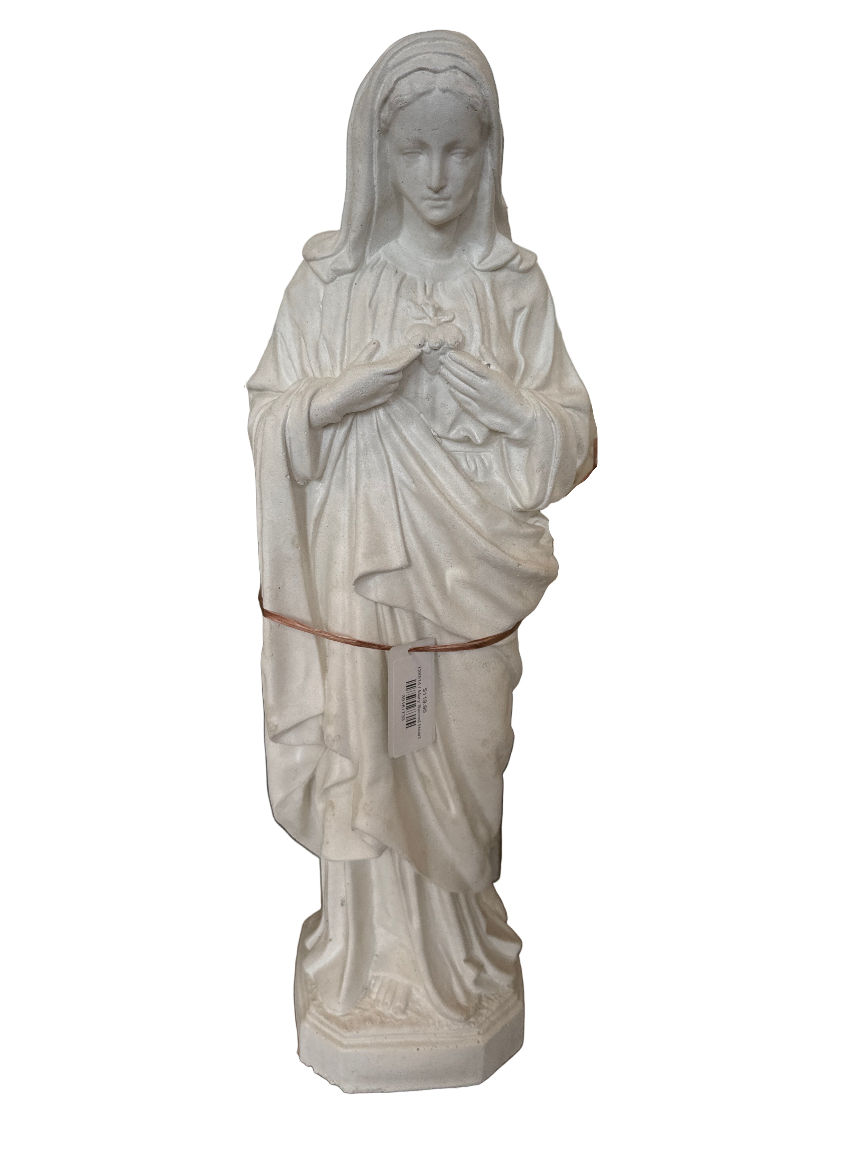 The Mary Sacred Heart Medium Statue, crafted from durable concrete, adds a serene and elegant presence to any outdoor or indoor space!