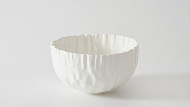 Large Bowl in Mascali Bianca. Generously sized bowl for serving salads or side dishes like mashed potatoes, roasted vegetables, or rice! Versatile high-fired porcelain pieces that are microwave safe! Food safe, tarnish free, dishwasher safe, oven safe to 500°. Easy Care.