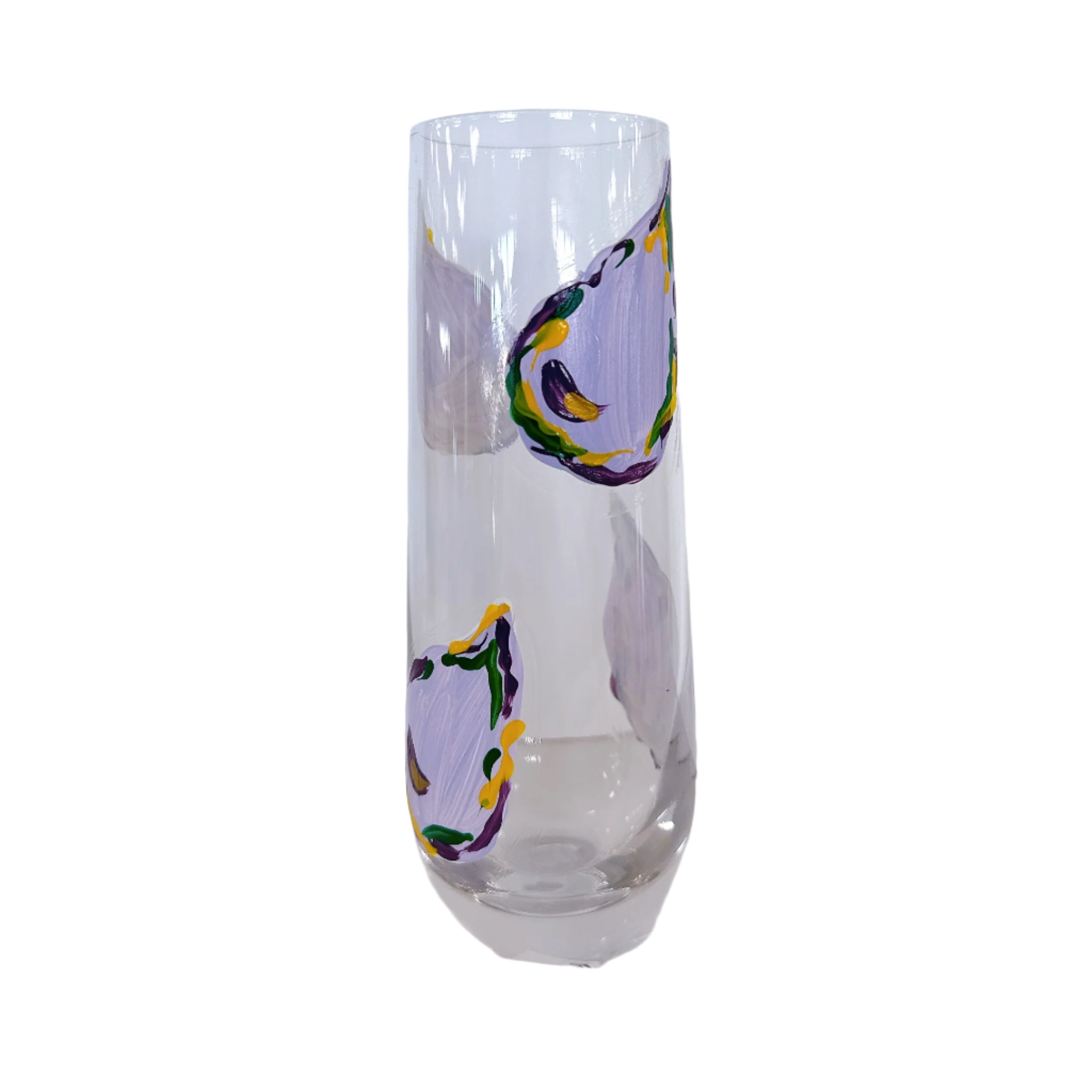Indulge in some bubbly with the MG Oyster Champagne Glass. Hand-painted by artist Emily Brosette, each glass boasts a unique mardi gras oyster design, making every sip a special experience. Cheers to individuality and whimsical style!