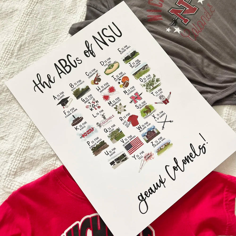 Here’s the perfect way to brighten your office, personal space, or kiddo’s room and teach them about a few things that make our Louisiana Colleges great! This print is made on card stock, and all it needs is the perfect frame!