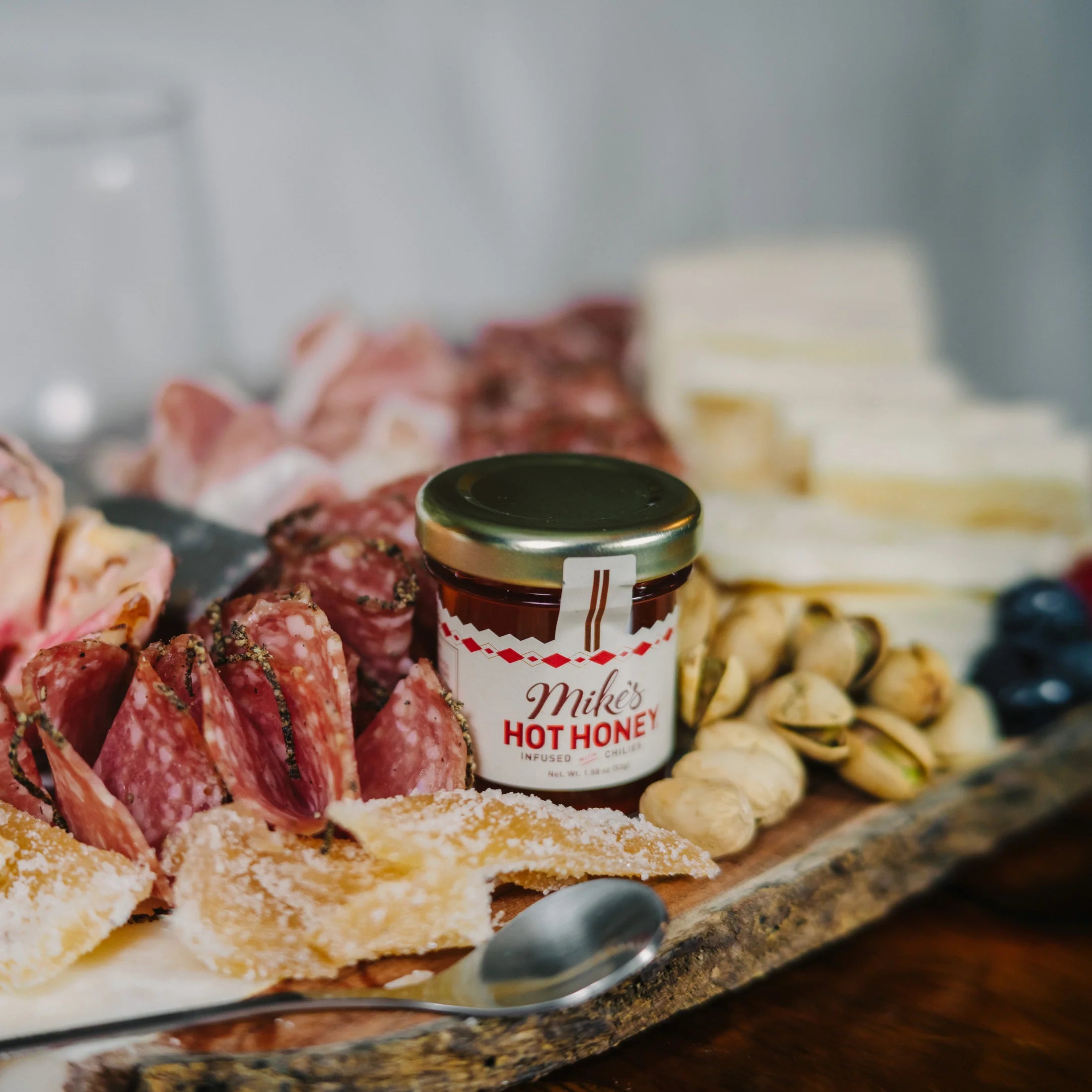 A sweet-heat combo of honey infused with chili peppers that adds the perfect kick to all your favorite foods. These mini jars are perfect for gifts, party favors, or sampling. Drizzle on pizza, cheese boards, fried chicken, or desserts. All-natural, gluten-free, paleo-friendly, with no artificial sugar or preservatives.