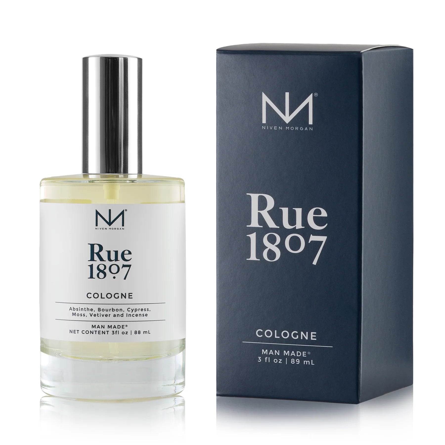 Rue 1807 evokes the intense desire of life. The seductive soul of New Orleans is magical and mystical. Niven Morgan’s first men’s fragrance captures this with notes of Absinthe and Bourbon, Cypress and Moss, Vetiver and Incense. This dark, spicy, and passionate elixir is the essence of Rue 1807.