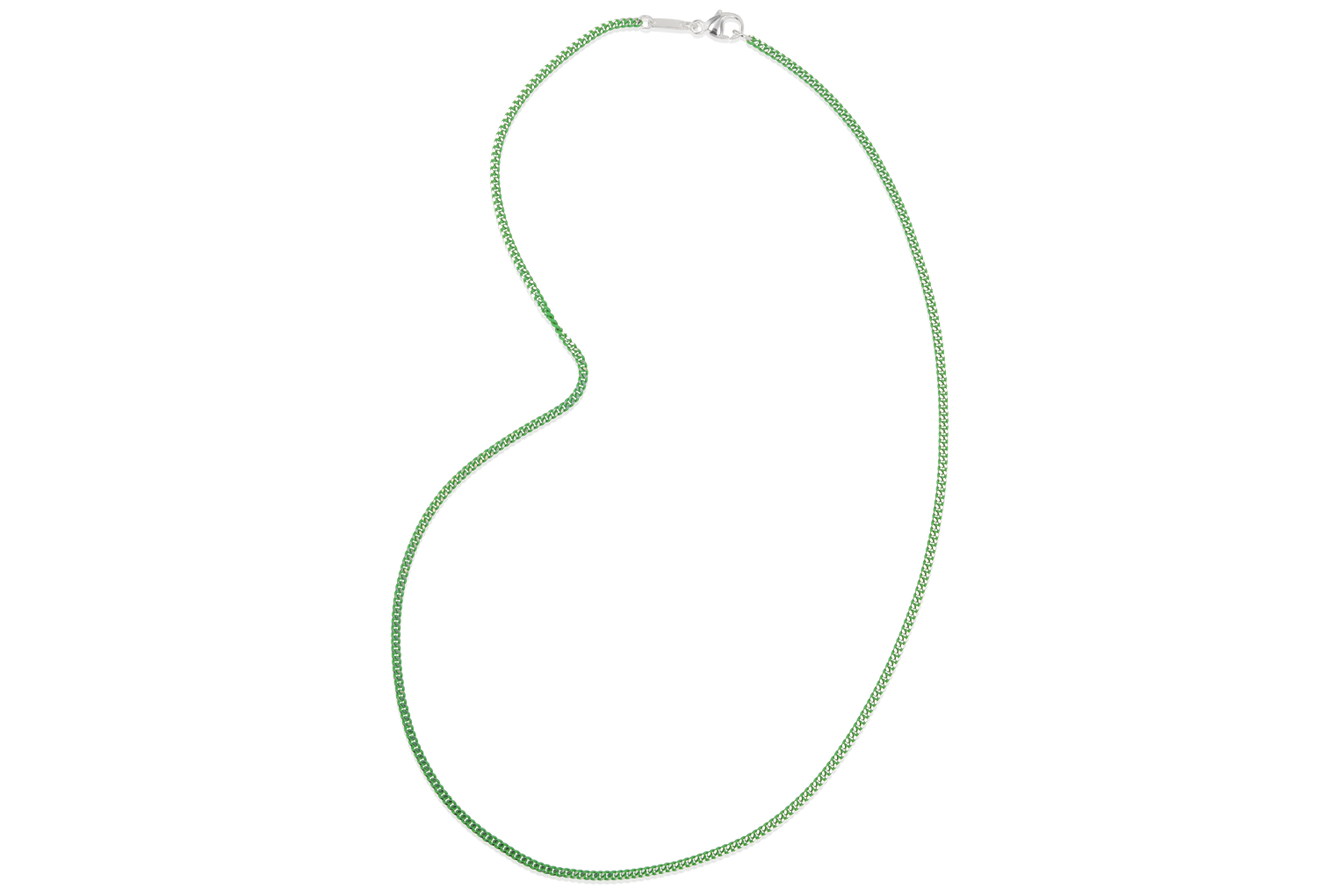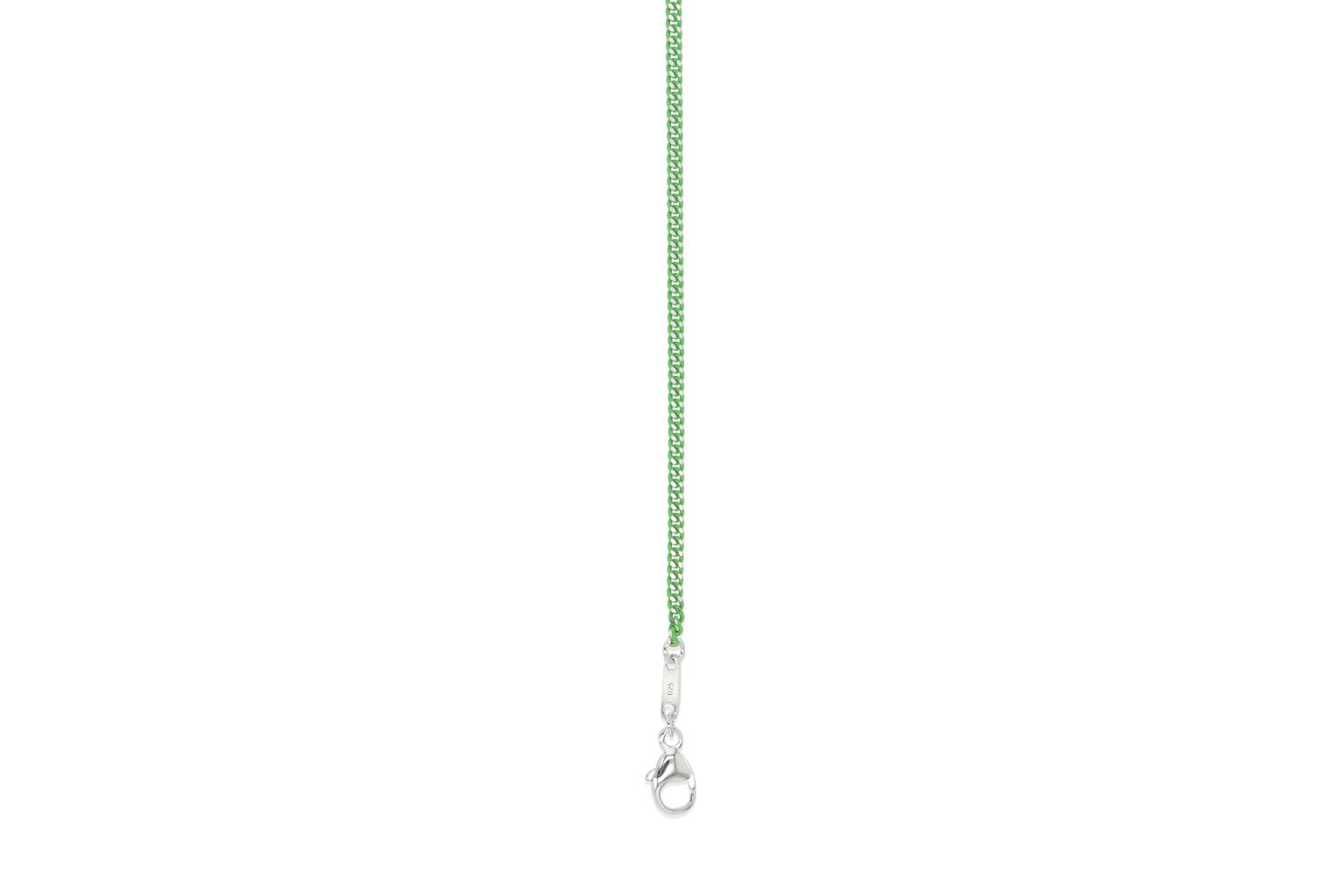 Sterling silver hand-painted green lacquer curb chain with diamond-cut detail.