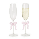 This elegant champagne glass features a delicate pink bow at its base, making it a perfect addition to special celebrations. The 9.1 oz glass is crafted from high-quality glass, ideal for serving champagne or other bubbly beverages. Its charming design adds a touch of style to any occasion.