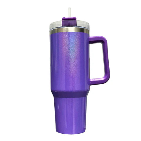 The 40oz Stainless Steel Shimmer Mega Mug in Purple features a dazzling shimmer finish, adding a touch of sparkle to your tableware.