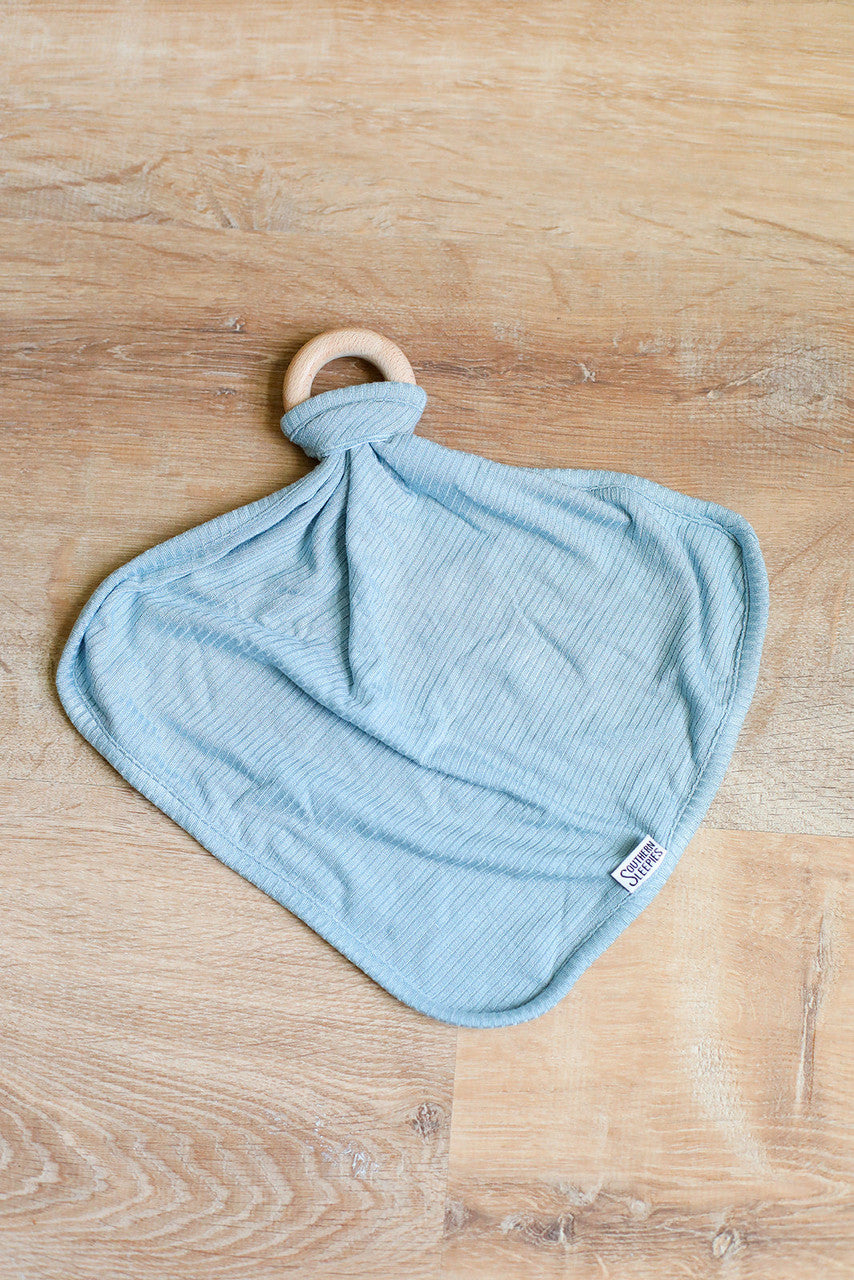 Seaspray Ribbed Bamboo Lovie with Wooden Ring