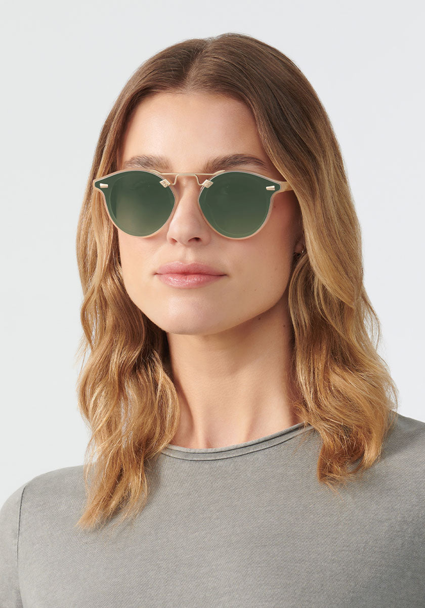 Our iconic classic. Inspired by the historic cast-iron balconies found in New Orleans’ French Quarter, the STL NYLON’s rounded oversized silhouette complements every face shape while its distinct brow and flat nylon lenses upgrade y’alls everyday uniform. Easy wear is a given with sturdy-yet-comfortable supports at the nose and temples.