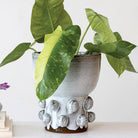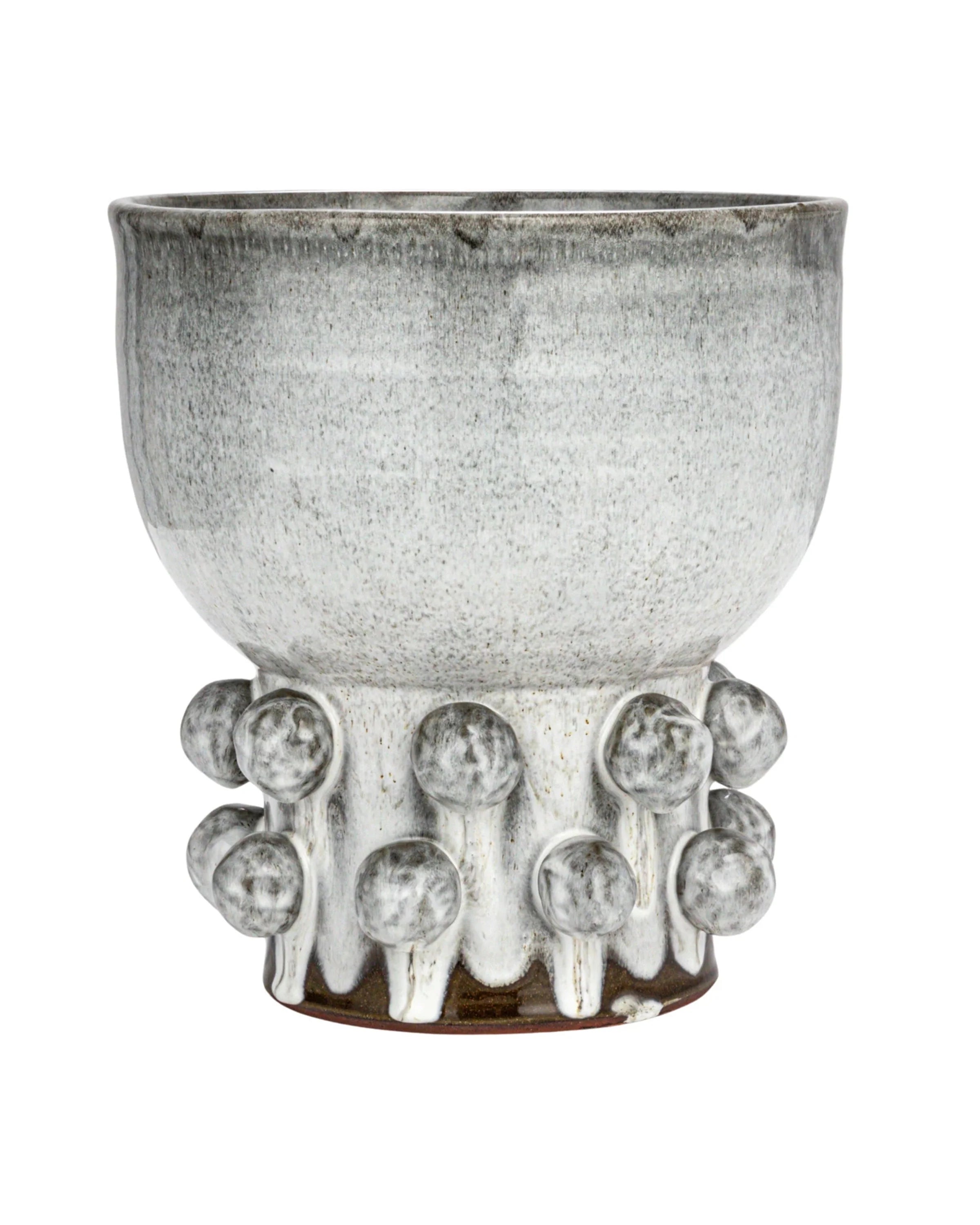 11" Round x 12-1/4"H Terra-cotta Hobnail Footed Vase, Reactive Glaze, White (Each One Will Vary)