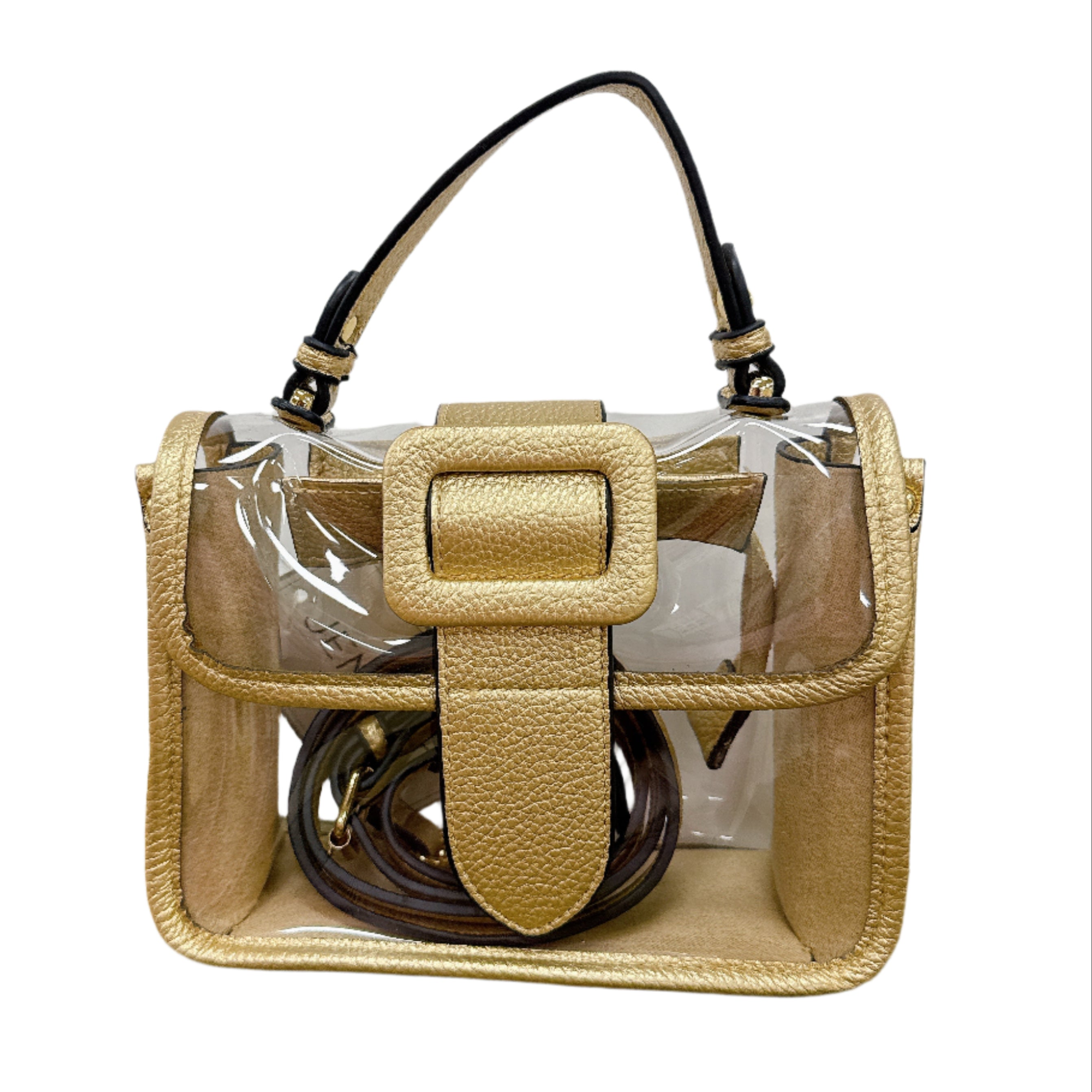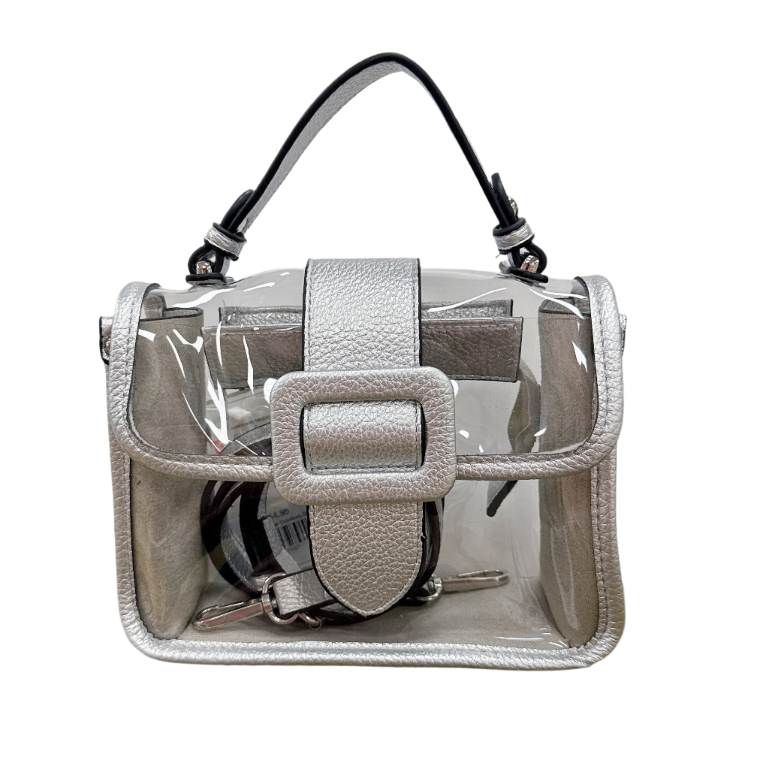 Get ready to shine at your next game or concert with the Toni Clear Crossbody Bag! This stylish purse comes with a handy long strap tucked inside, making it easy to go hands-free while you cheer or dance. Choose from dazzling gold, sleek silver, or classic black to match your vibe. Clear, chic, and totally fun—your new favorite accessory is here!