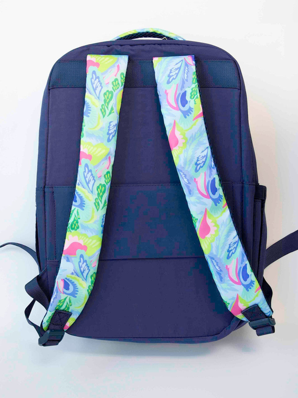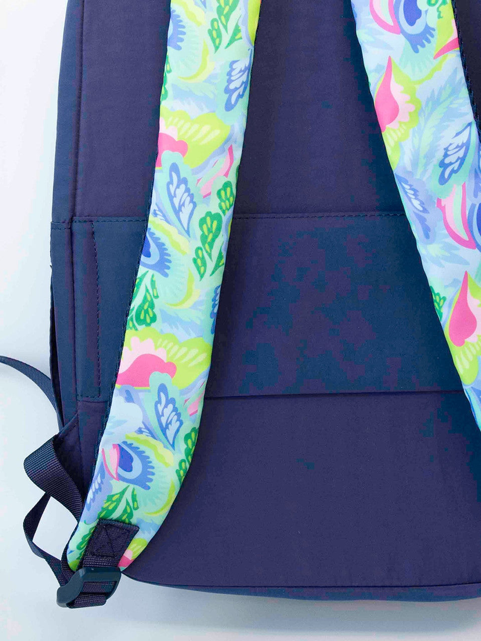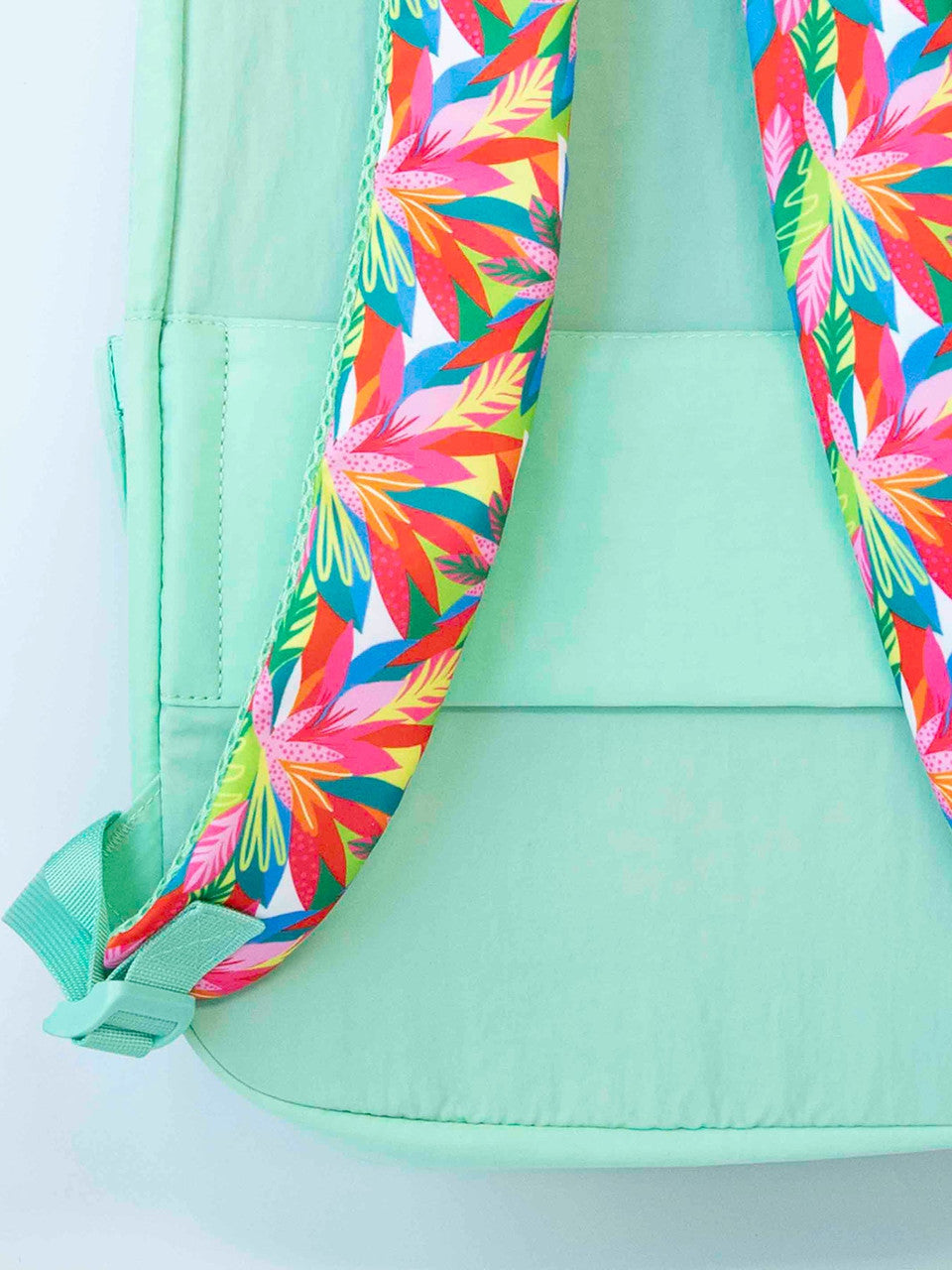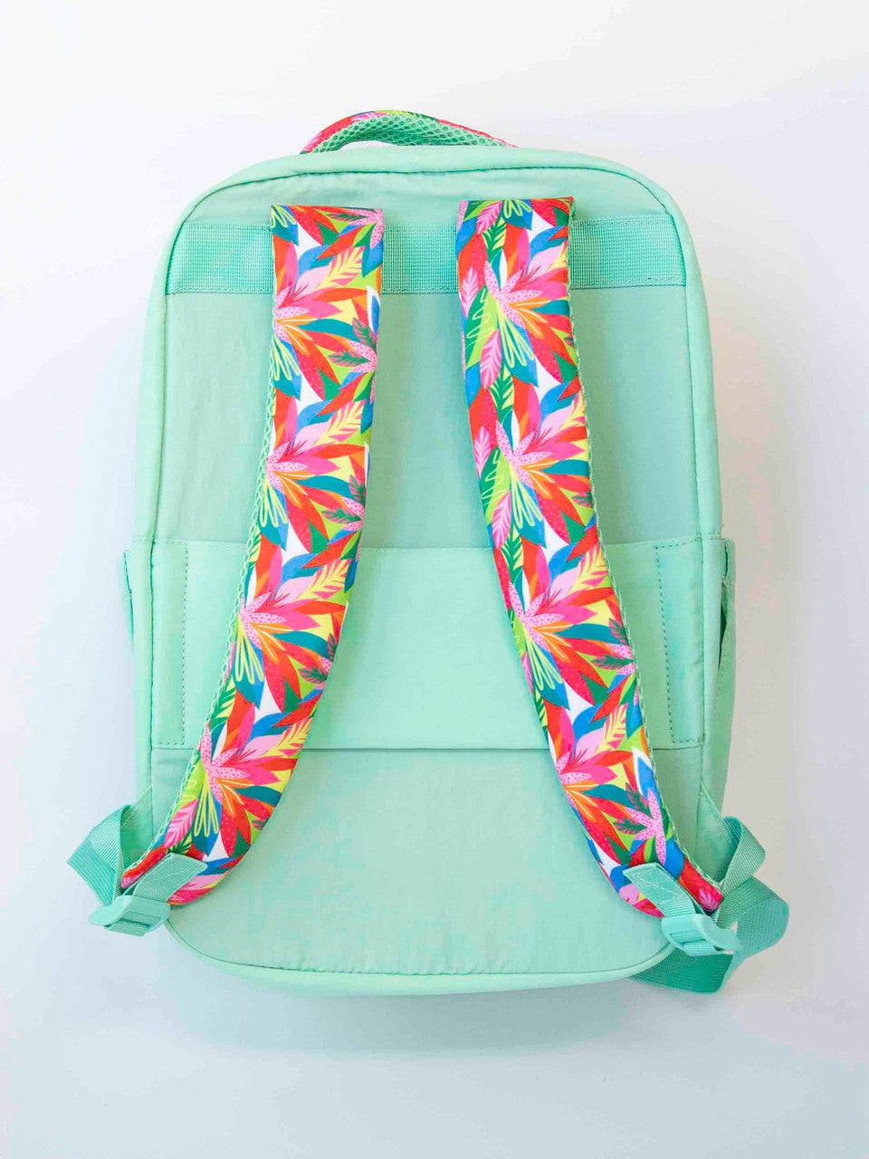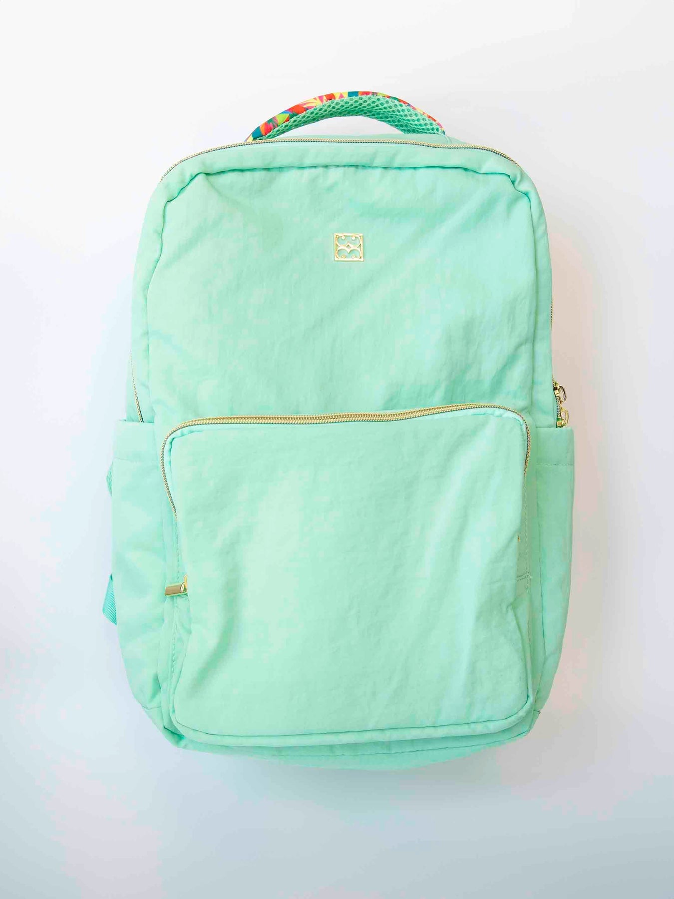 The Travel Backpack is a blend of style and practicality designed to enhance your travel experience. It features a solid color exterior adorned with vibrant patterns on the handles and straps. Its size is the perfect balance between spaciousness and convenience, making it an ideal companion for your travels!
