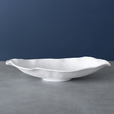 Make hosting a breeze. The fabulously functional VIDA Nube Collection features sculptural works of art presented in a luscious white satin finish. Our offerings in Nube luxury melamine are extended with the addition of three new bowls, a cake plate, a rectangular tray, and a pedestal cracker tray that are as practical as they are beautiful. The delightful VIDA Nube Medium Oval Bowl has the look and feel of fine ceramics, but the practicality of melamine. A great centerpiece or fruit bowl, the multipurpose medium bowl makes a dramatic statement wherever it is placed. With its matte finish and dramatic shape, this Nube bowl is truly a standout. It makes a sensationally luxe gift for a great price. Made of luxury melamine for everyday enjoyment, this piece is ideally suited for indoor and outdoor entertainment. Dishwasher safe (top rack), heavy-weight, break resistant and durable, food safe, BPA and PABA free.