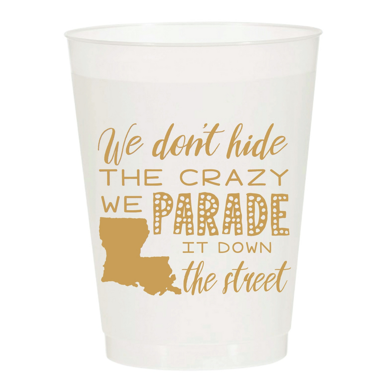 We Don't Hide Crazy Mardi Gras Frosted Cups-Pack of 10