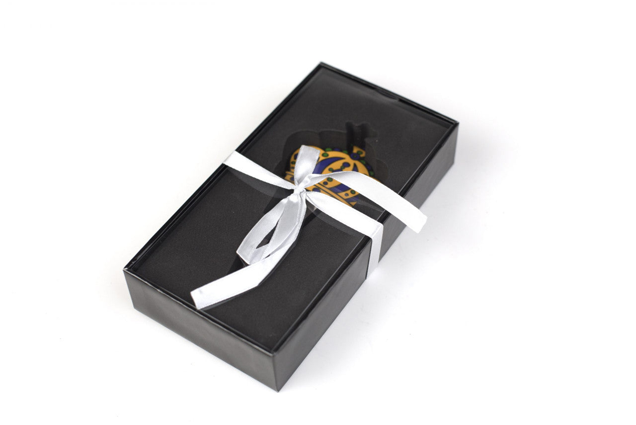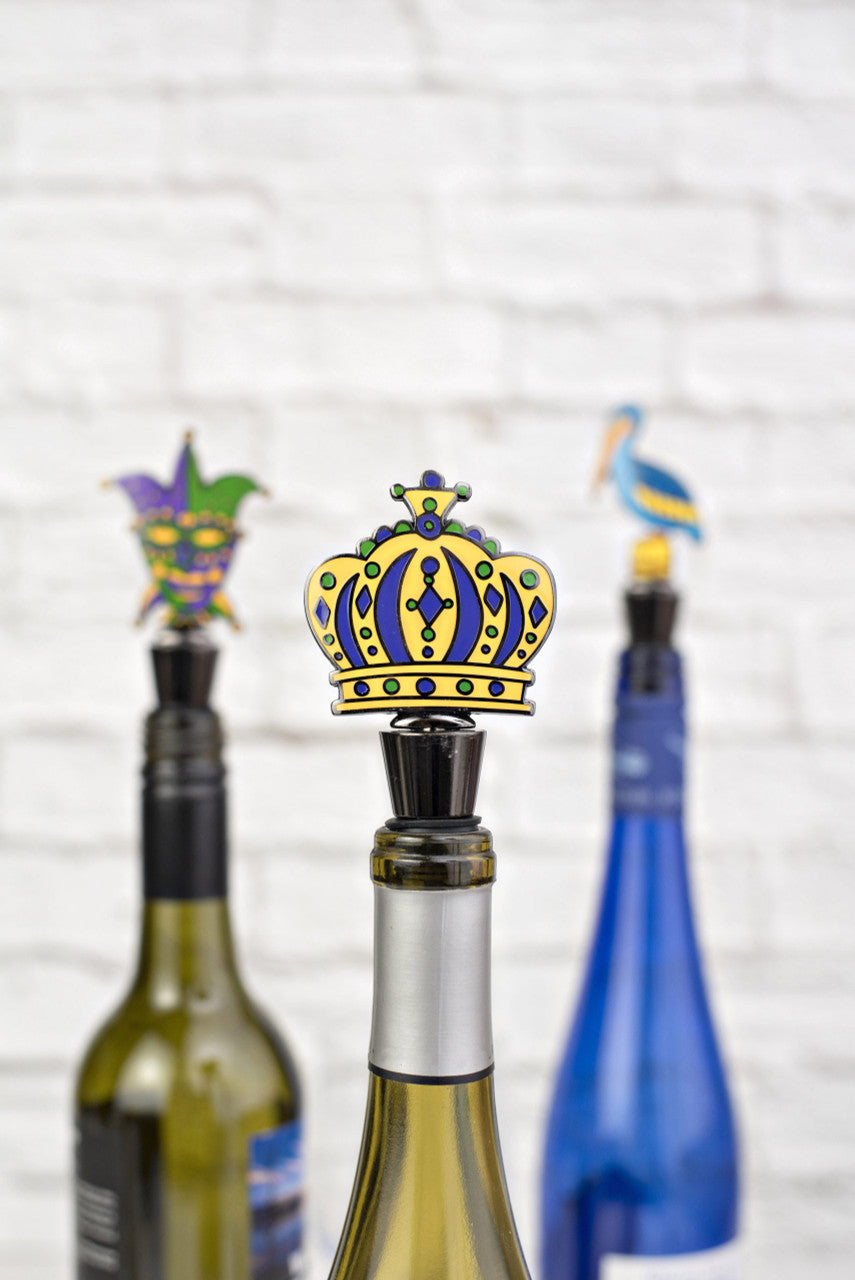 A classic heavy duty metal wine stopper with a silicone sealing ring featuring our Mardi Gras Crown design on top.