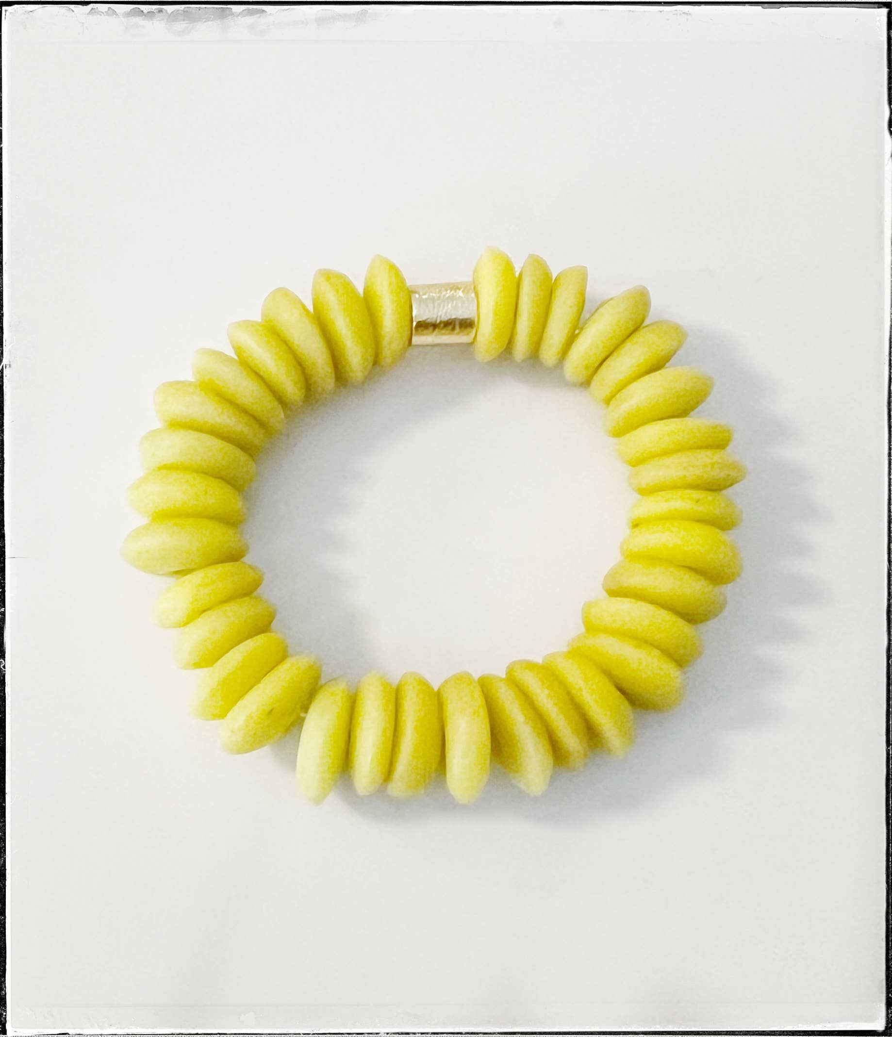 Yellow Ashanti Glass Bead Stretch Bracelet Brass Charm Gold