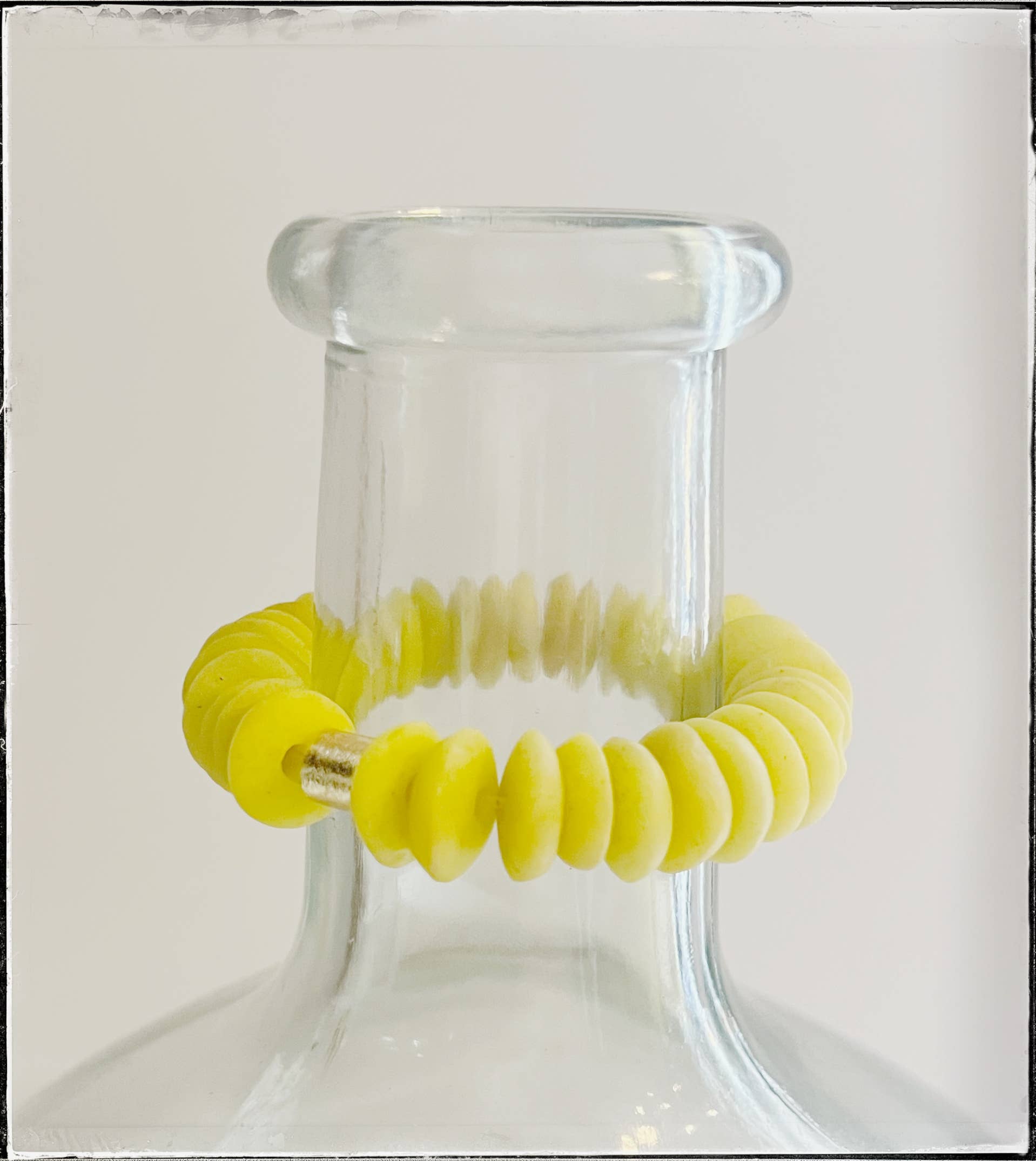 • Yellow Ashanti disk recycled glass bead- 14mm